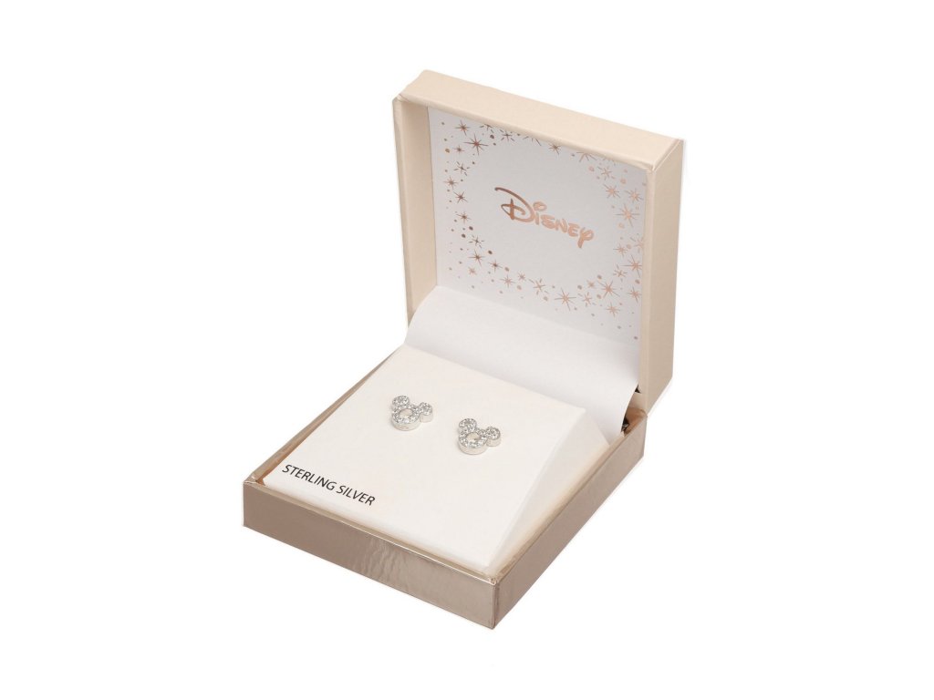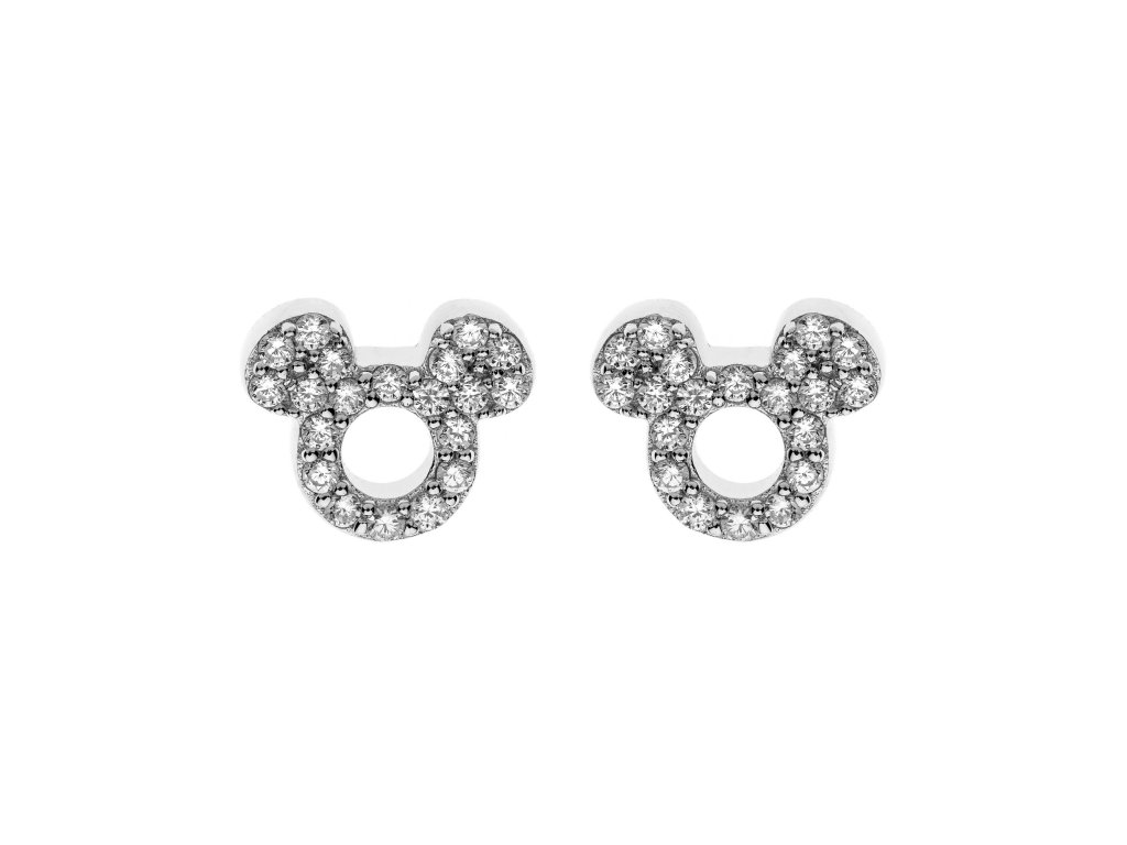 Náušnice s obrysem oblíbené postavičky myšáka Mickey Mouse od Disney jsou vyrobené ze stříbra ryzosti 925 s lesklou povrchovou úpravou. Zdobeny jsou čirými krystaly, které šperku dodávají unikátní třpyt. Zapínají se na puzetku, která zajišťuje nejen pohodlné nošení, ale také zabraňuje ztrátě náušnic. Tyto dětské náušnice jsou dodávány ve stylové krabičce. Váha šperku je 1,8 g.