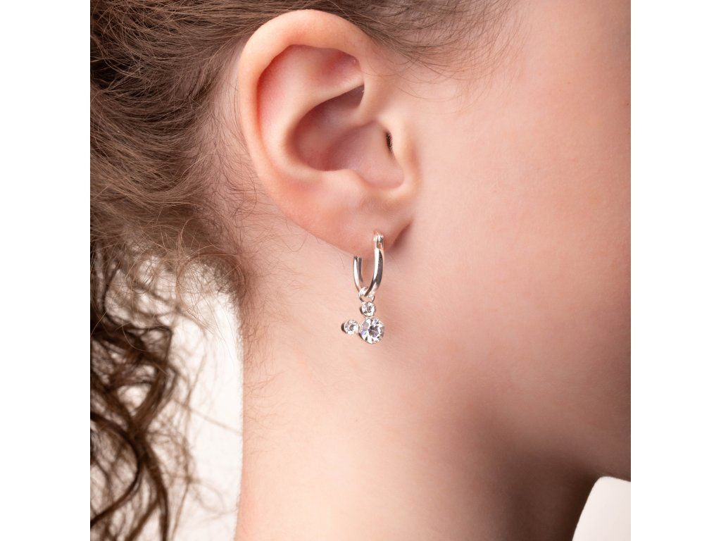 Tyto dětské visací náušnice s přívěskem Mickey Mouse s krystaly potěší všechny malé fanoušky pohádkového světa Disney. Ikonický tvar hlavy Mickeyho v kombinaci se zářivými krystaly vytváří hravý, ale zároveň elegantní vzhled.