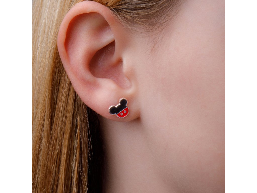 Náušnice ve tvaru oblíbené postavičky Mickey Mouse od Disney jsou vyrobené z velmi kvalitního stříbra ryzosti 925 s lesklou povrchovou úpravou. Zdobené jsou černým a červeným smaltem. Zapínají se na klasickou puzetku, která zajišťuje pohodlné nošení a zabraňuje ztrátě náušnic. Tyto dětské náušnice jsou dodávány ve stylové krabičce. Váha šperku je 0,8 g.