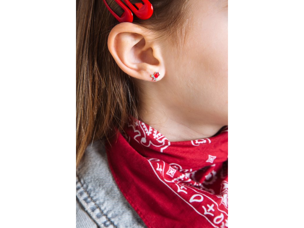 Tyto krásné náušnice jsou vyrobeny ze stříbra a zdobené pečlivě naneseným červeným smaltem pro poupě a zeleným pro lístky. Kombinace smaltu a stříbra působí hravým dojmem. Lesklá povrchová úprava zvýrazňuje detaily a dodává náušnicím elegantní šmrnc. Jednoduché zapínání na puzetu zajišťuje pohodlné a spolehlivé nošení po celý den.