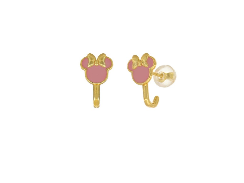 Tyto dětské náušnice ve tvaru hlavy Minnie Mouse potěší všechny malé fanoušky ikonické disneyovské postavičky. Růžový smalt zvýrazňuje charakteristickou mašli a dodává šperku jemný, hravý vzhled.
