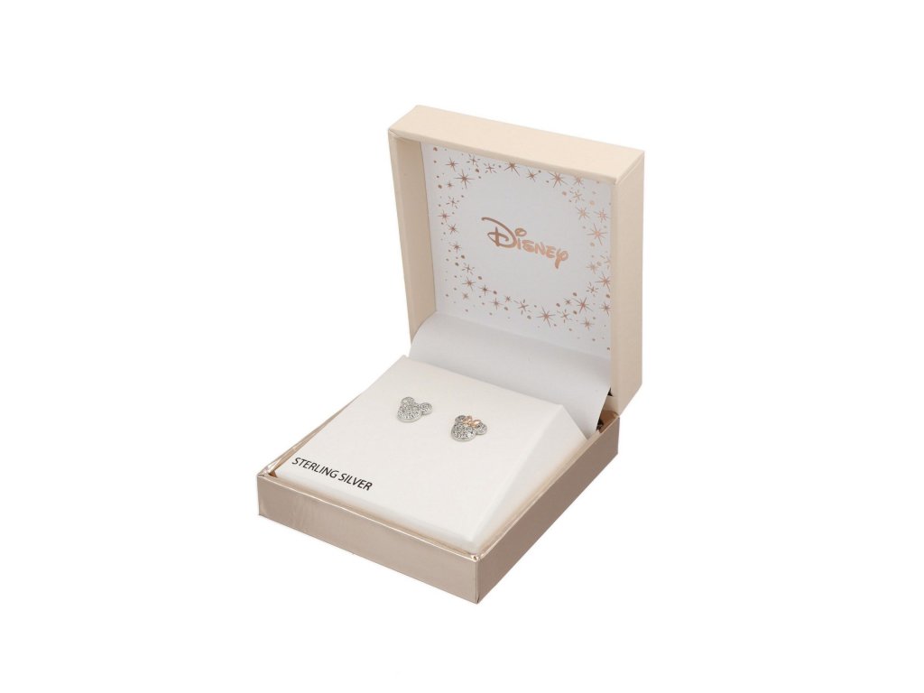 Náušnice jsou vyrobené ze stříbra ryzosti 925/1000 a zdobené jsou zářivými krystaly. Minnie nesmí chybět mašle, laděna do tónu růžového zlata.
