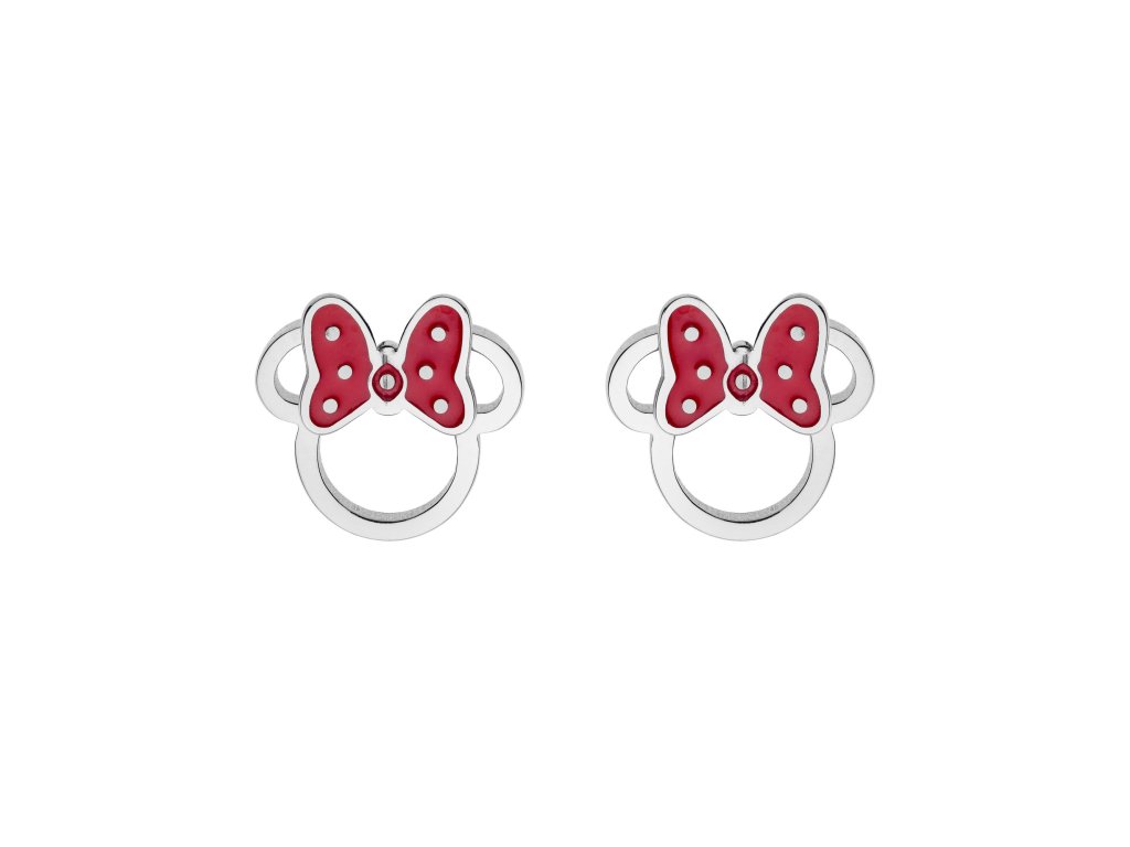 Náušnice mají tvar oblíbené myšky Minnie Mouse, které nechybí typická červená mašle s puntíky. Tyto dětské náušnice jsou typu pecky a vyrobené jsou z kvalitní nerezové oceli a dekorované smaltem.