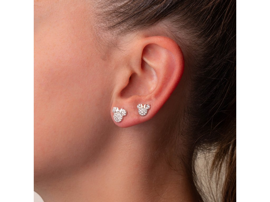 Zářivé náušnice ve tvaru Minnie Mouse potěší všechny obdivovatelky světa Disney komiksů.