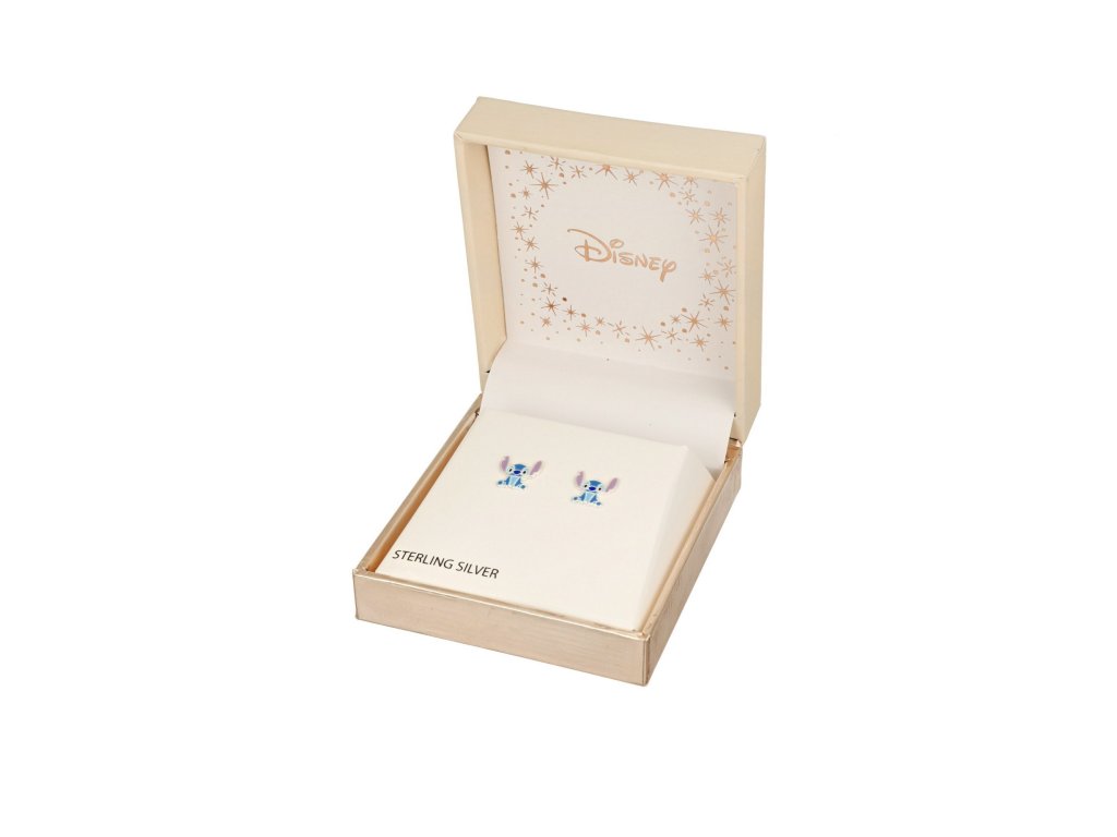 Náušnice ve tvaru nestárnoucí postavičky Stitche od Disney zaujmou asymetričností a barvami. Vyrobené jsou z velmi kvalitního stříbra ryzosti s lesklou povrchovou úpravou, jenž je dekorováno vícebarevným smaltem. Zapínají se na klasickou puzetku, která zajišťuje pohodlné nošení. Tyto dětské náušnice jsou dodávány ve stylové krabičce. Váha šperku je 0,8 g.