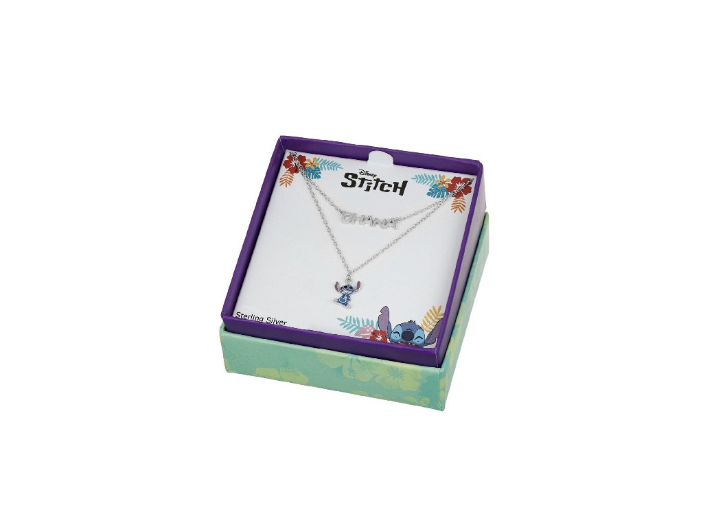 Náhrdelník je tvořen dvěma jemnými řetízky vyrobenými z kvalitního stříbra ryzosti 925/1000. Delší řetízek s přívěskem roztomilého Stitche, kratší řetízek nese stříbrný nápis „OHANA“, připomínající, že rodina je vždy na prvním místě a nikdo nezůstává sám.