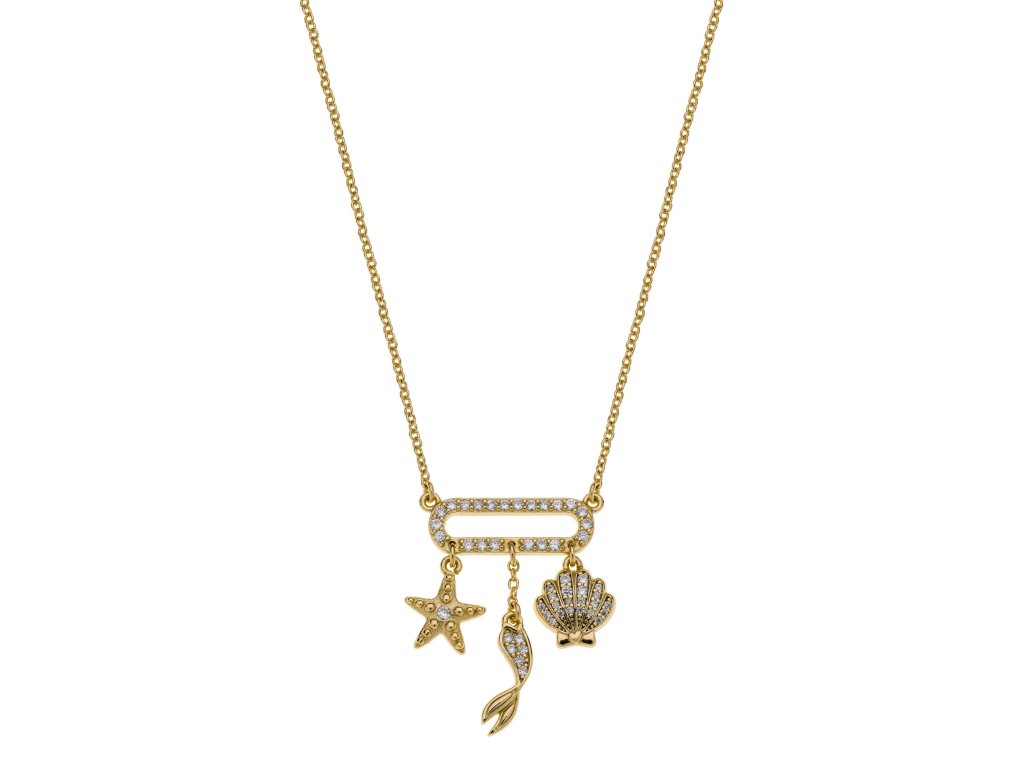 Pozlacený stříbrný dětský náhrdelník s motivem z pohádky Malá mořská víla potěší všechny malé fanoušky kouzelného podmořského světa Disney. Čiré krystaly dodávají přívěsku jemný třpyt a zvýrazňují pohádkový design.