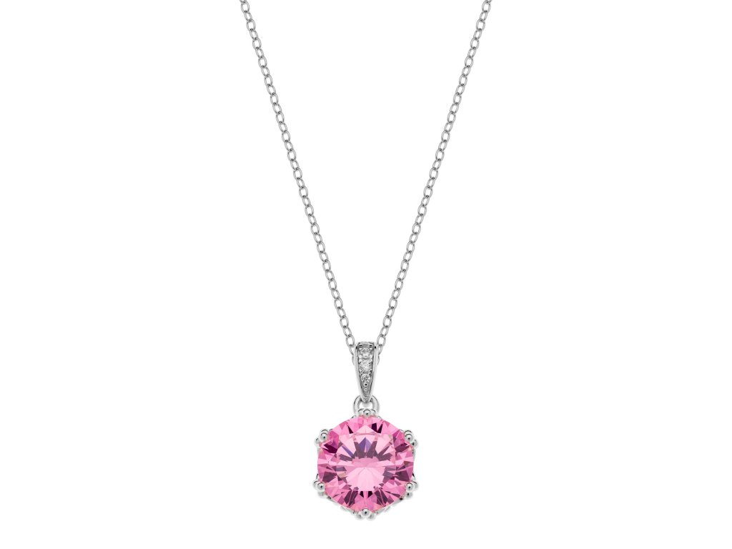 Stříbrný dětský náhrdelník s přívěskem osazeným růžovým krystalem a čirými krystaly potěší všechny malé milovnice pohádkového světa Disney Princess. Dominantní růžový krystal dodává šperku jemný a romantický vzhled, zatímco čiré krystaly zvýrazňují jeho třpyt.