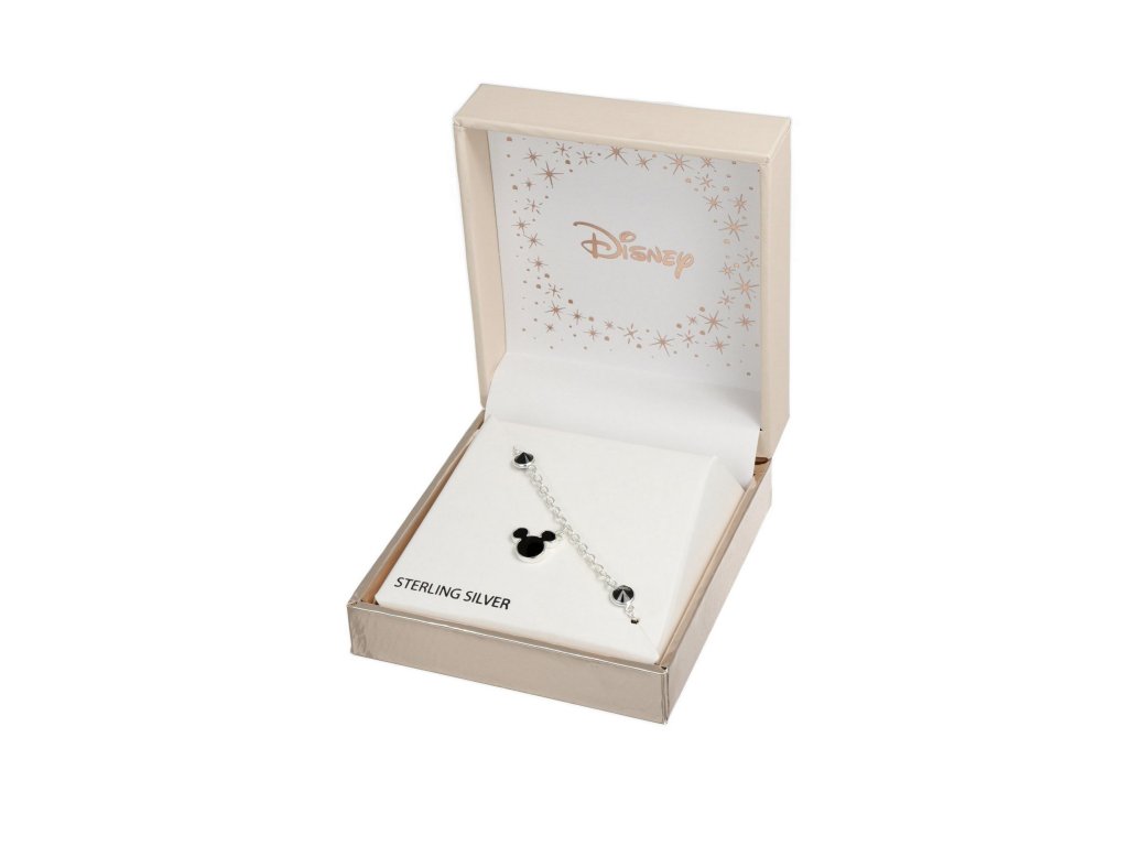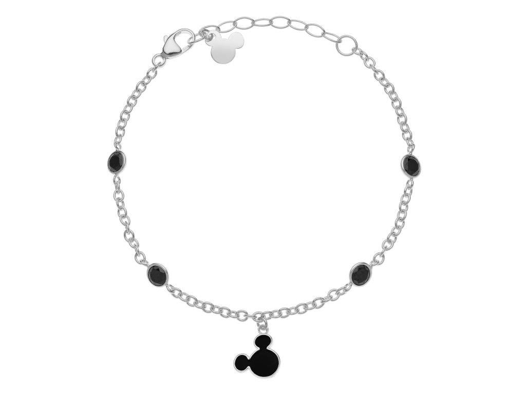 Náramek zdobený hlavou postavičky myšáka Mickey Mouse od Disney je vyroben z velmi kvalitního stříbra ryzosti 925 s lesklou povrchovou úpravou. Hlava myšáka Mickey je zdobena černým smaltem, který na náramku zcela vyniká. Velmi působivé jsou rovněž čtyři černé krystaly, které náramek zdobí. Maximální délka náramku je 17 cm. Dodáván je ve stylové krabičce. Váha šperku je 1,8 g.