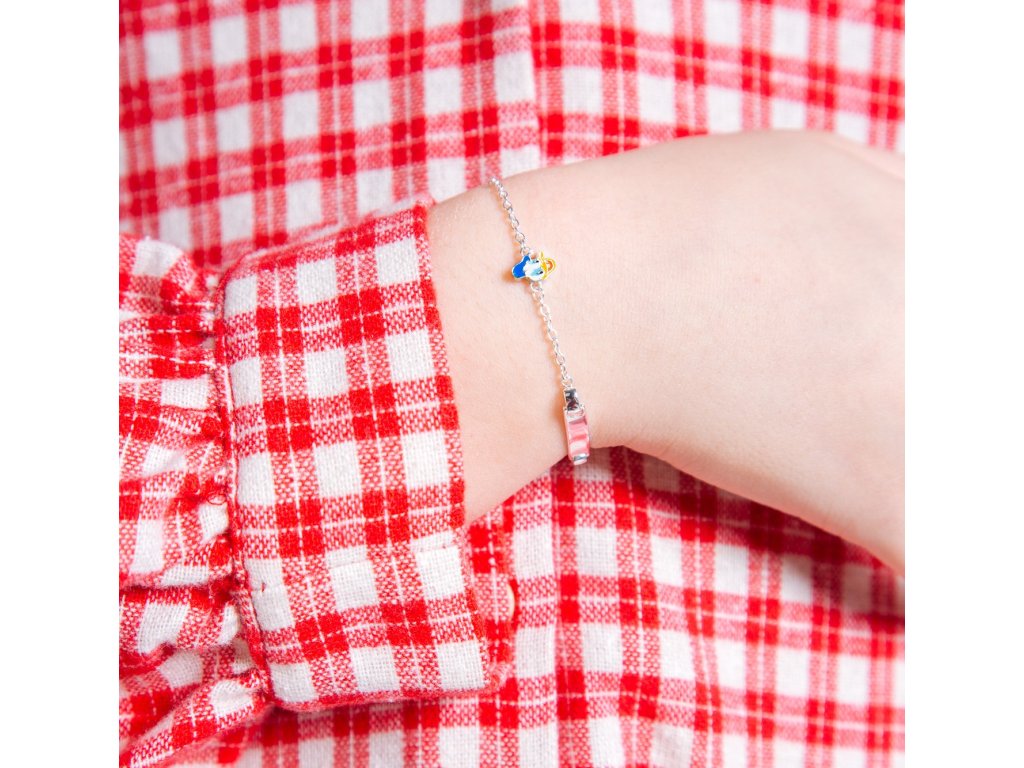 Ryzost stříbra je 925/1006 a váha náramku činí 0,0014 kg. Díky nastavitelné délce 12–14 cm se náramek snadno přizpůsobí dětskému zápěstí a zajistí pohodlné nošení po celý den. Lehká konstrukce a bezpečné zapínání umožňují, aby se děti mohly bezstarostně těšit ze svého oblíbeného šperku.