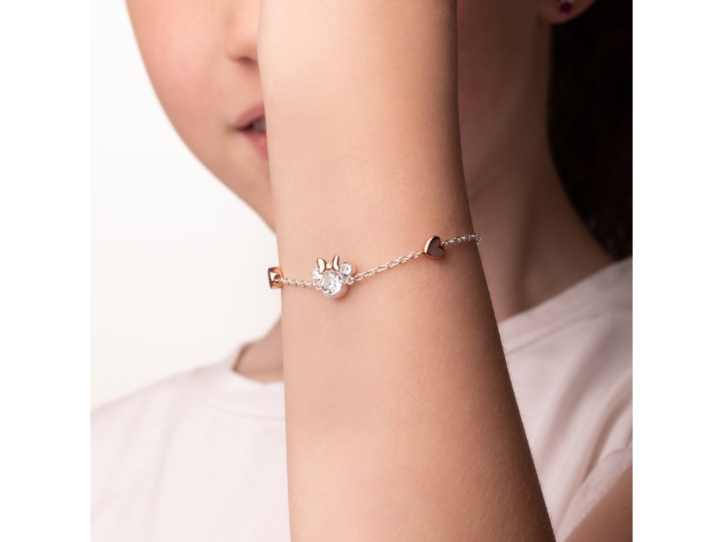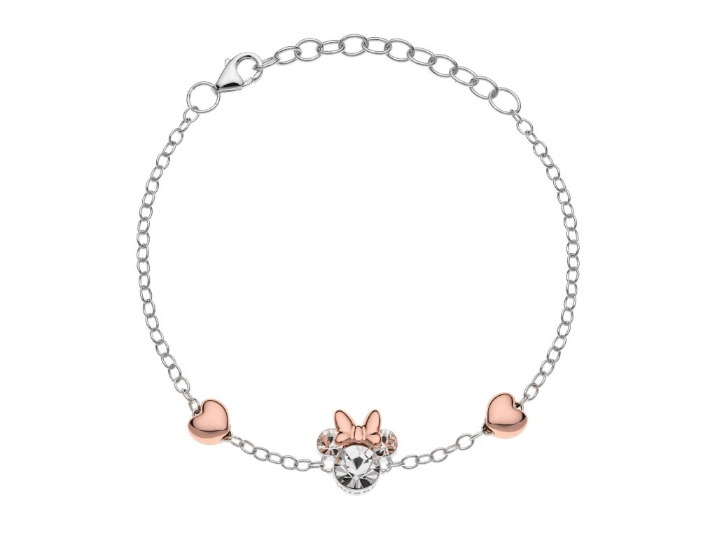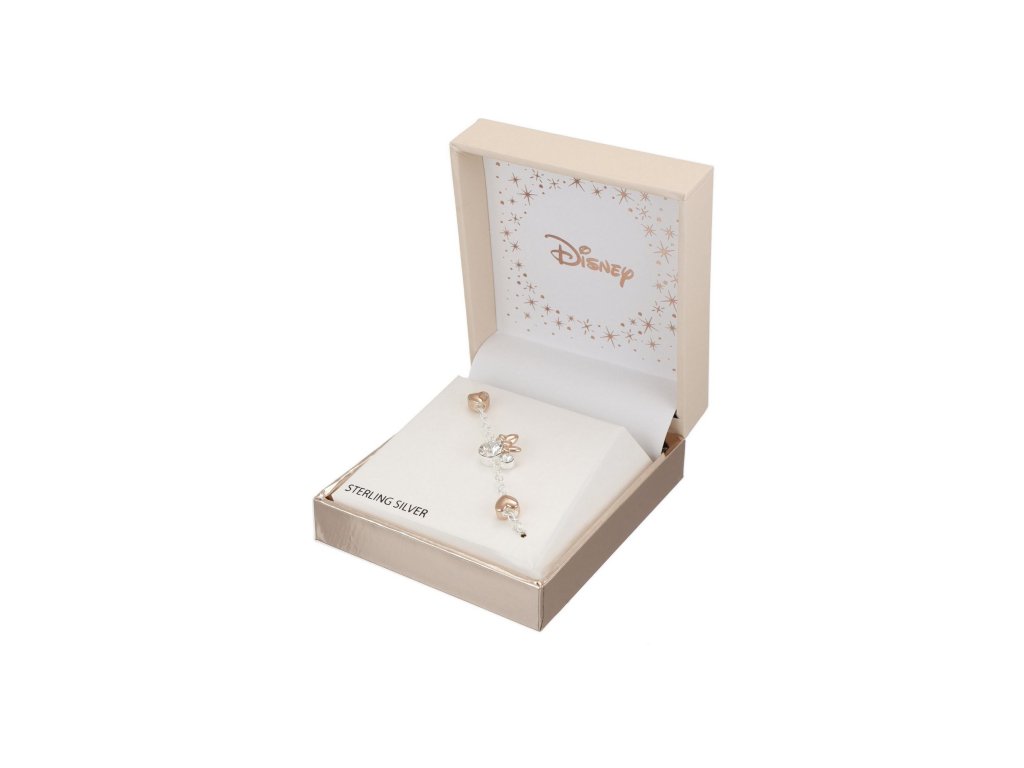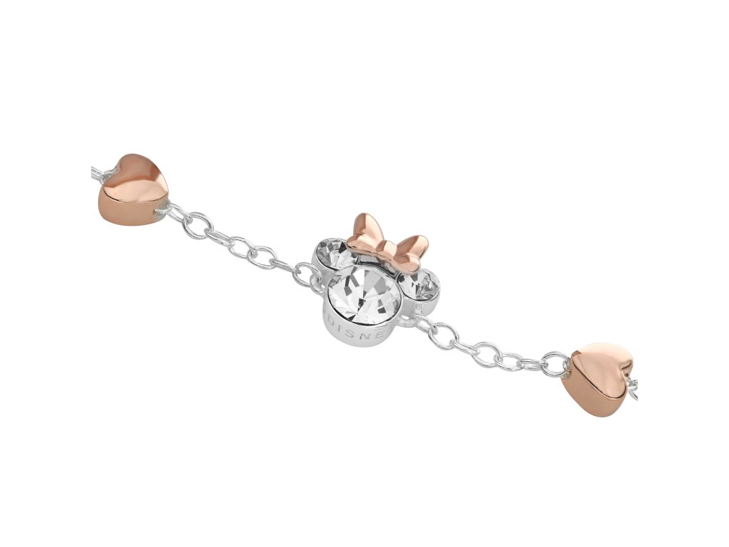 Náramek s přívěskem ve tvaru hlavy myšky Minnie Mouse od Disney je vyroben z velmi kvalitního stříbra ryzosti 925 s lesklou povrchovou úpravou. Přívěsek Minnie Mouse, který je dominantou celého náramku, je zdoben třpytivými krystaly. Celkovou krásu tohoto šperku ale ještě podtrhují symboly ve tvaru srdcí a mašle, které jsou pozlaceny růžovým zlatem. Maximální délka náramku je 14 cm. Dodáván je ve stylové krabičce. Váha šperku je 4,2 g.