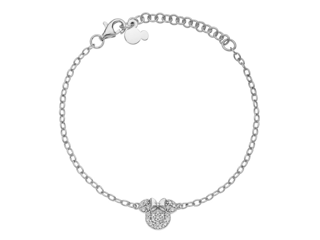 Náramek zdobený hlavou postavičky myšky Minnie Mouse od Disney je vyroben z velmi kvalitního stříbra ryzosti 925 s lesklou povrchovou úpravou. Hlava myšky Minnie je zdobena čirými krystaly, které celkový vzhled náramku velmi pěkně vyzdvihují. Maximální délka náramku je 17 cm. Dodáván je ve stylové krabičce. Váha šperku je 3,2 g.