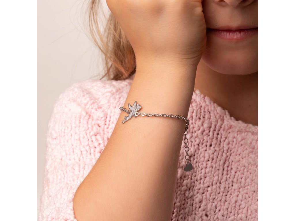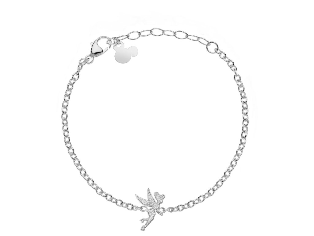 Náramek s ozdobou ve tvaru víly Zvonilky od Disney je vyroben z nerezové oceli s lesklou povrchovou úpravou. Přívěsek je zdoben třpytivou glazurou, která šperku dodává vábivý lesk a třpyt. Maximální délka náramku je 17 cm. Dodáván je ve stylové krabičce.