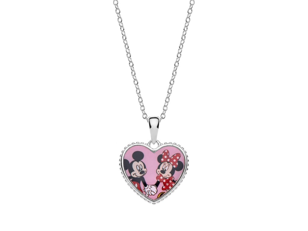 Minnie a Mickey Mouse na srdíčkovém přívěsku stříbrného náhrdelníku pro všechny milovnice Disney pohádek. Vyrobeno ze stříbra ryzosti 925/1000.