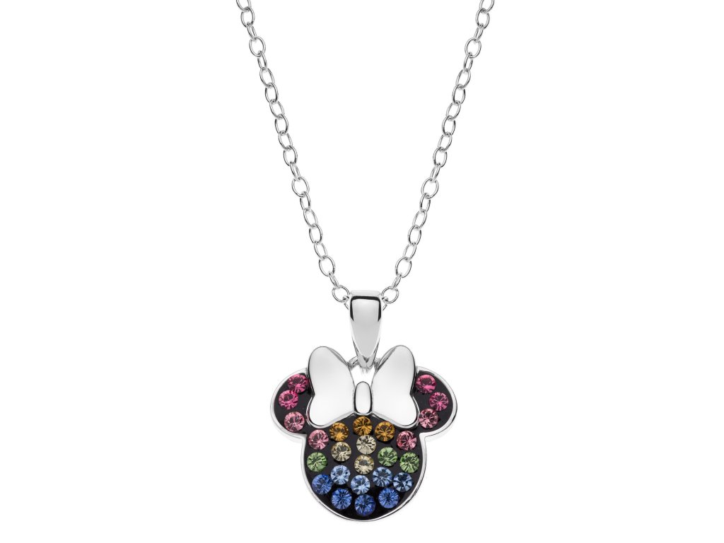 Veselý náhrdelník pro malé parádnice, ideální dárek pro milovnice Disney pohádek. Stříbrný náhrdelník s přívěskem ve tvaru známé postavičky Minnie Mouse je pokrytý barevnými krystaly, které z něj dělají zdobu šperkovnice každé malé princezny. Vyroben je ze stříbra ryzosti 925/1000.Doplňkové parametry