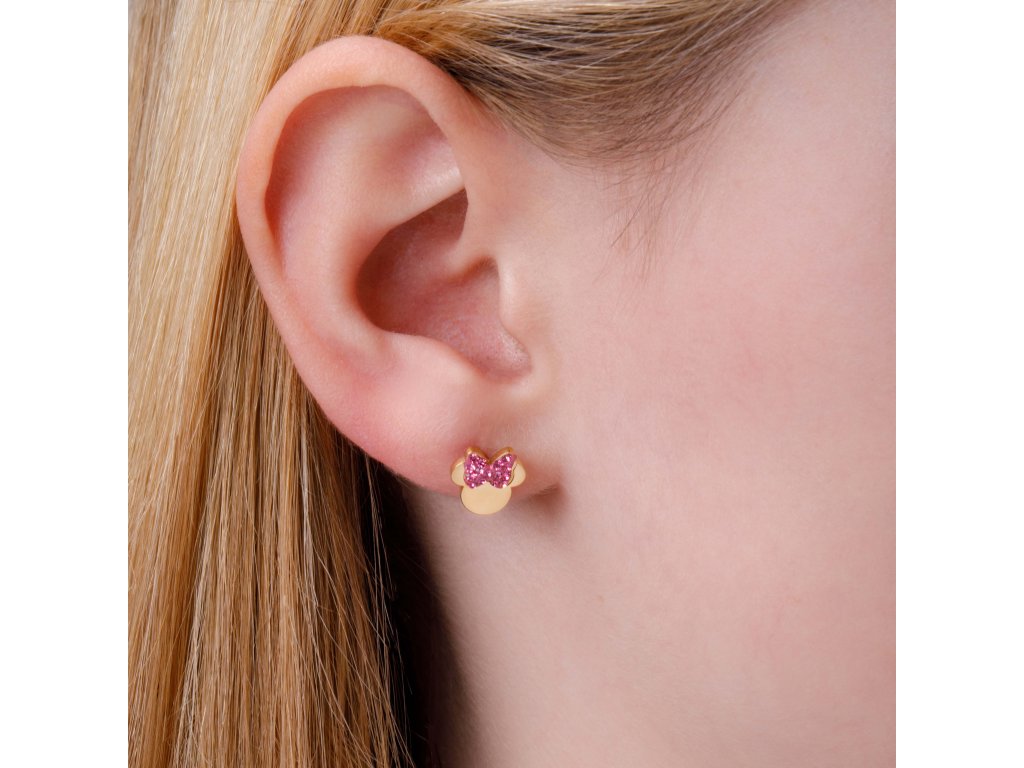 Sada náušnic od Disney obsahuje dva páry náušnic, z nichž jeden pár je ve tvaru hlavy myšky Minnie Mouse a druhý ve tvaru pecek. Náušnice jsou vyrobeny z pozlacené nerezové oceli s lesklou povrchovou úpravou. Mašle myšky Minnie je zdobena fuchsiovými krystaly a do každé pecky je zasazen jeden fuchsiový krystal, který těmto drobným náušnicím dominuje. Společně se zlatavou barvou vytváří půvabnou kombinaci. Oba páry se zapínají puzetkou, která zajišťuje pohodlné nošení a zabraňuje ztrátě náušnic. Dodávány jsou ve stylové krabičce.