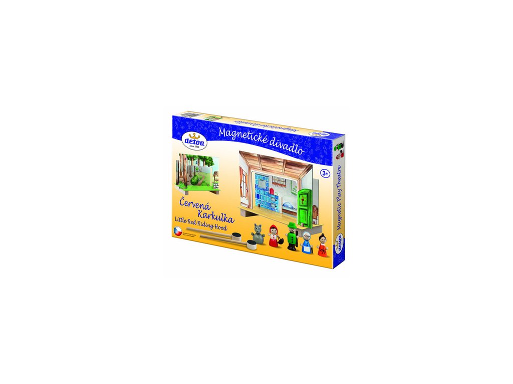 Magnetické divadlo Červená Karkulka. Divadlo obsahuje oboustranně malované kulisy les-chaloupka. Děti si mohou odehrát klasickou pohádku pomocí dřevěných tyček a figurek s magnetem. Výrobek je nevhodný pro děti do 3 let. Rozměry balení Š×V×H - 335×230×35 mm. VAROVÁNÍ! Produkt obsahuje magnety nebo magnetické součástky. Upozornění ! V případě, že u zboží svítí skladem v externím skladu - je dodání zboží mezi 3 - 7prac. dny. Děkujeme a pochopení.Doplňkové parametry