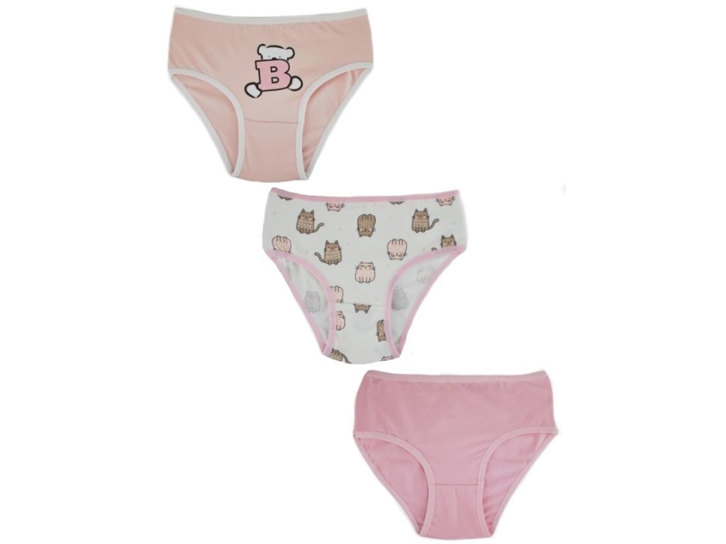 Dívčí bavlněné kalhotky, Cat - 3ks v balení, růžovo/bílé