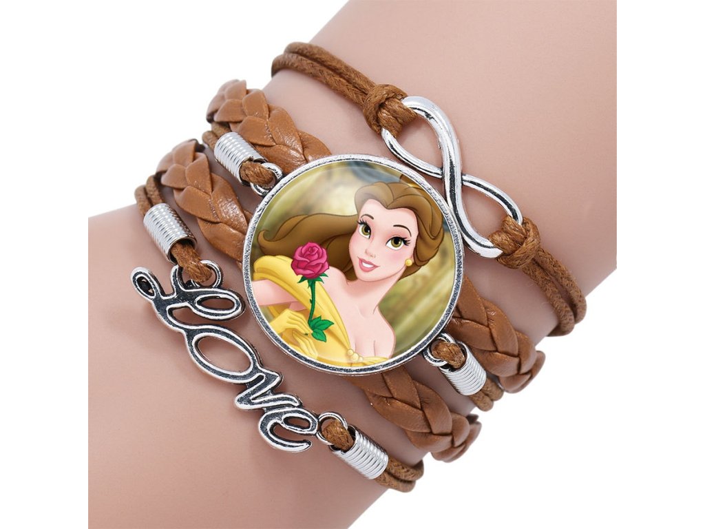 Krásný pletený náramek s kovovým zapínáním a medailonkem s motivy udělá radost nejedné parádnici a fanynce animované pohádky.
