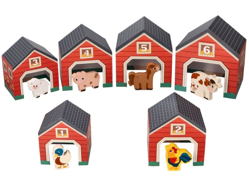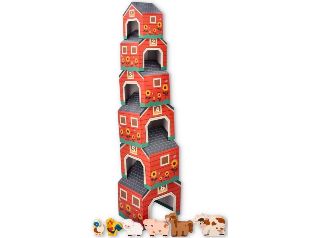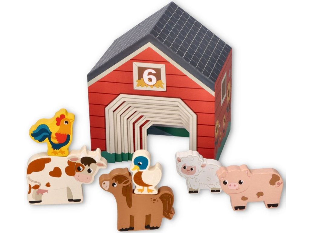 Domečky/pyramidy s 6 dřevěnými zvířátky, Farma
