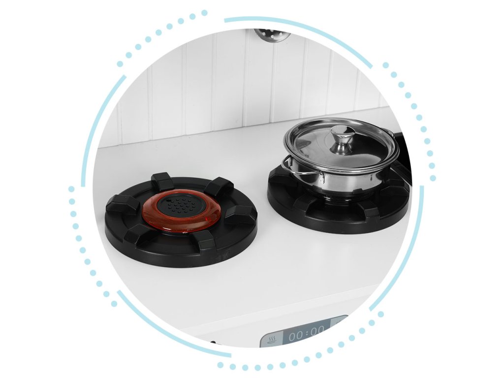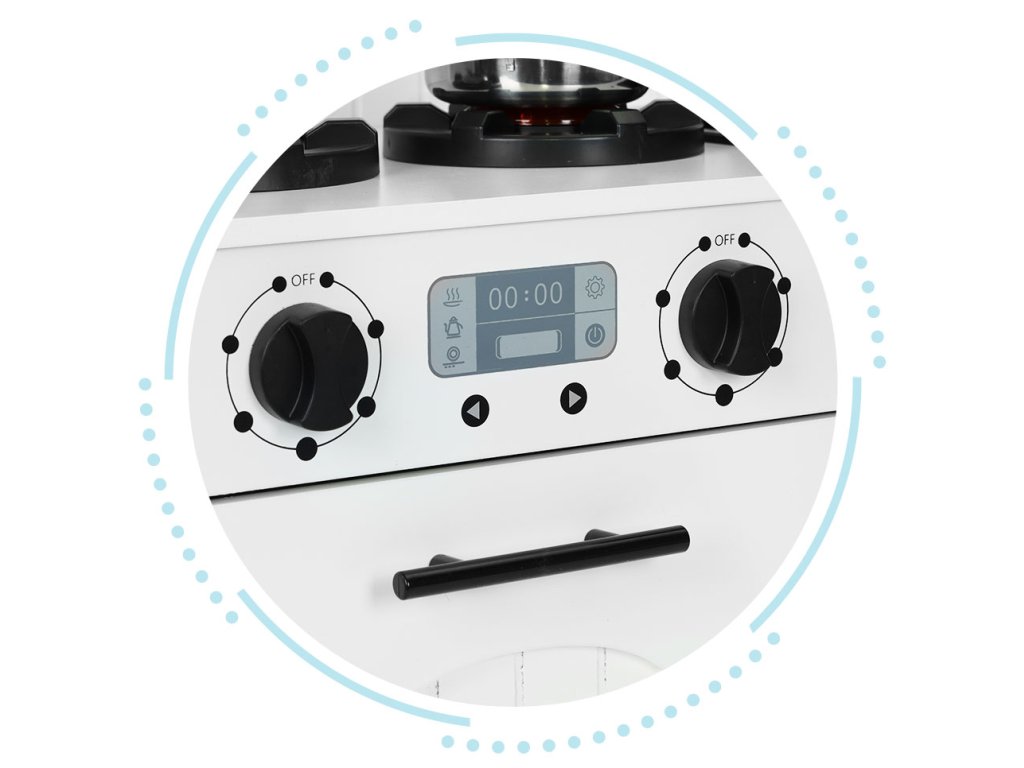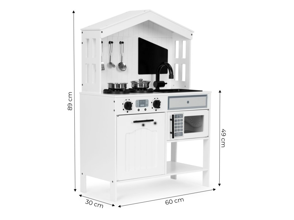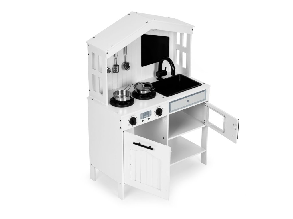 Dřevěná kuchyňka ECOTOYS. Pro děti od 3 let. Bezpečná a stabilní konstrukce. Mnoho funkcí jako skutečná kuchyně. Funkční trouba a dva plotýnky. Otočná ovládací kolečka. Pohyblivá baterie s dřezem. Mikrovlnka. 5 kovových doplňků v balení. Podporuje představivost a rozvíjí jemnou motoriku. Skvělá zábava. Děti milují hračky, díky nimž se mohou cítit jako dospělí, napodobovat každodenní činnosti a chování a přitom se rychle učit poznávat svět kolem sebe. Tato forma hry pozitivně podporuje rozvoj dítěte, buduje kreativitu, představivost a jemné dovednosti. S ECOTOYS se děti ocitnou jako v opravdové kuchyni a příprava dobrot pro celou rodinu jen tak neskončí. Kuchyňka je vyrobena z odolných desek a dřevěných prvků, díky nim působí autenticky a jedinečně a její konstrukce bez ostrých hran je bezpečná pro děti. Krásná barevnost a věrné detaily zajistí, že se bude skvěle vyjímat v dětském pokoji a přitáhne děti na dlouhé hodiny skvělé zábavy. Jako ve skutečné kuchyni. Kuchyňka má otočná kolečka pro simulaci ovládání plotýnek a trouby. Děti mohou regulovat teplotu a měnit nastavení plotýnky, tvořit hravé recepty a to bez rizika popálení. Skvělá příležitost pro kreativní hraní a zkoušení nových nápadů v bezpečném prostředí. Příprava jídel. Součástí kuchyňky jsou 2 hrací plotýnky. Díky nim je hra ještě zábavnější a přiložené doplňky skvěle doplní vaření i smažení oblíbených dětských specialit. V balení 5 kuchyňských doplňků. Hrnec. Pánev s poklicí. Obracečka. Cedník. Lžíce na těstoviny. Všechny prvky jsou z kovu a nemají ostré hrany, takže jsou pro děti bezpečné. Specifikace. Věková skupina: 3 roky+. Rozměry: 89x30x60 cm. Hmotnost: 10,5 kg. Rozměry balení: 66x35x16 cm. Počet doplňků: 5. Materiál: dřevo, kov, plast. Výrobce: ECOTOYS. Upozornění: Výrobek není vhodný pro děti mladší 3 let, může obsahovat malé části. Obal není hračka, odstraňte ho z dosahu dítěte. Nenechávejte dítě bez dozoru. Dodržujte pokyny výrobce a montujte podle návodu.Doplňkové parametry