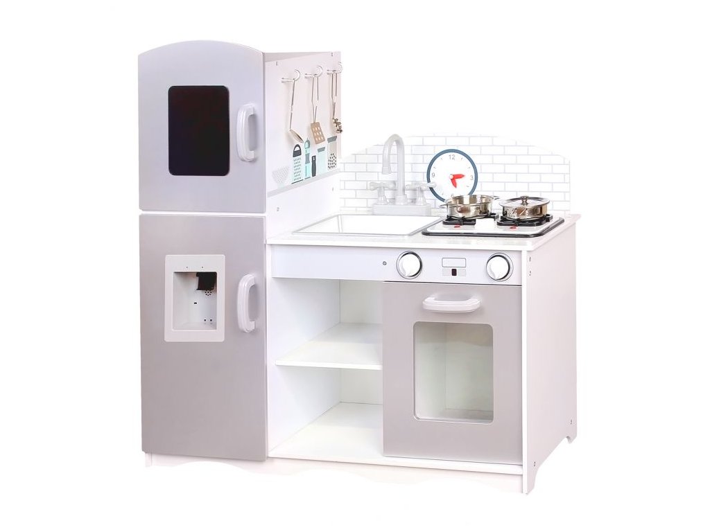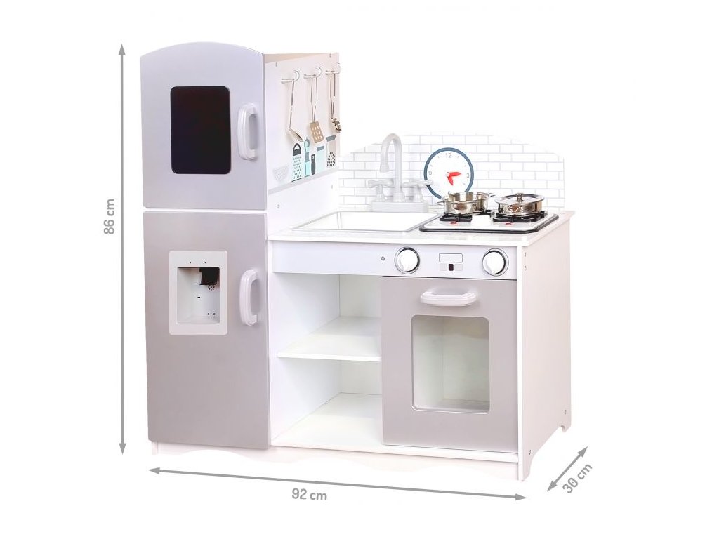 Dřevěná kuchyňka XXL s příslušenstvím, 86 x 92 cm x 30 cm - šedá