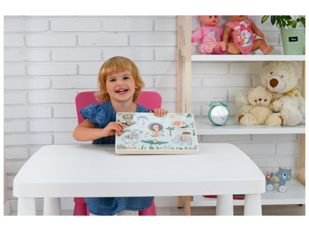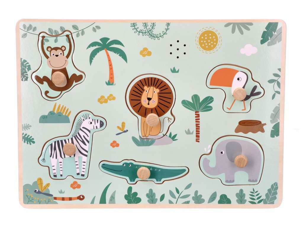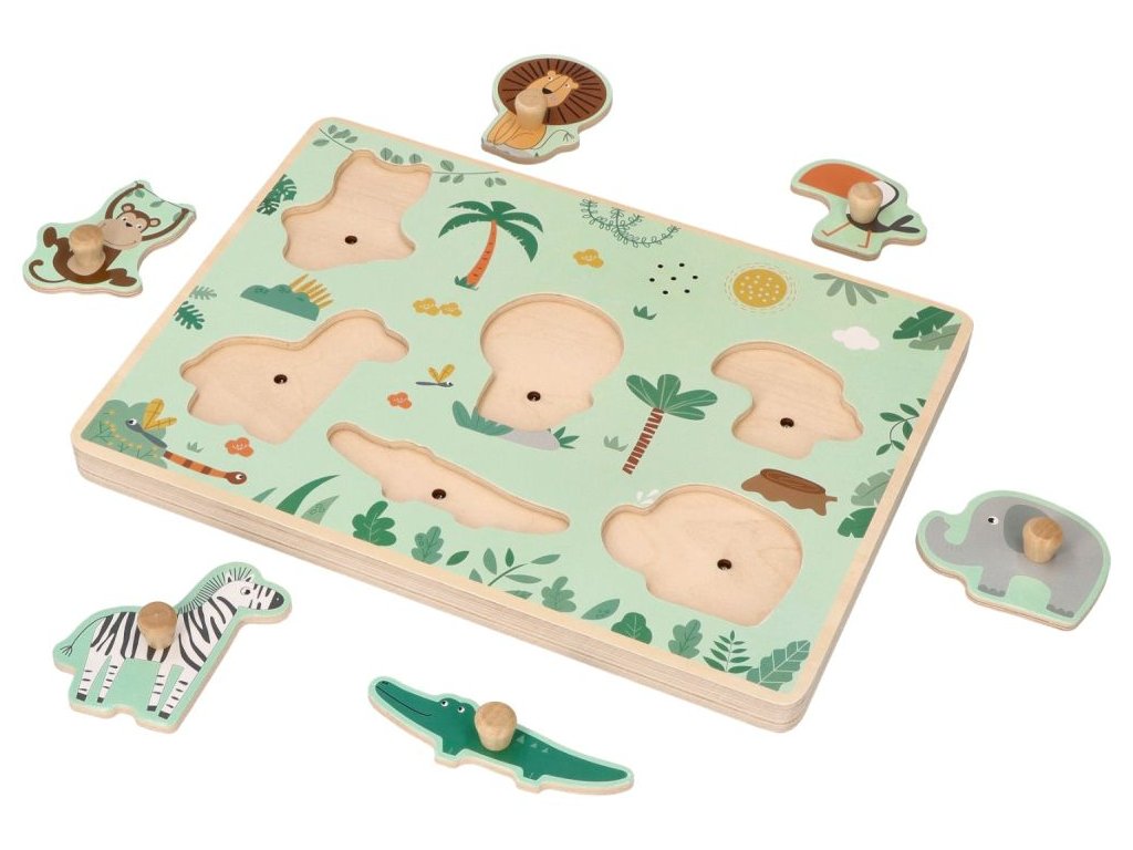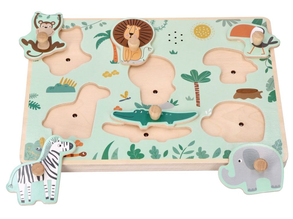 Dřevěné zábavné vkládací puzzle se zvukem Adam Toys, Safari