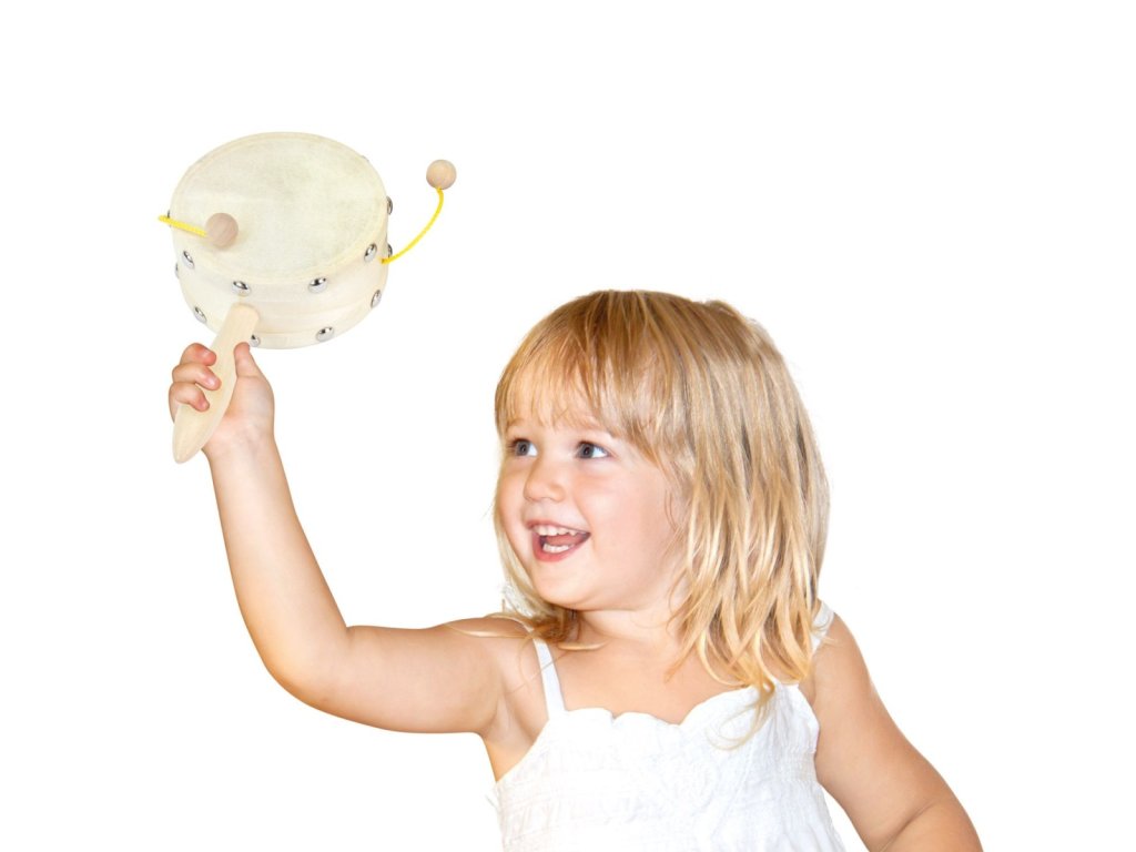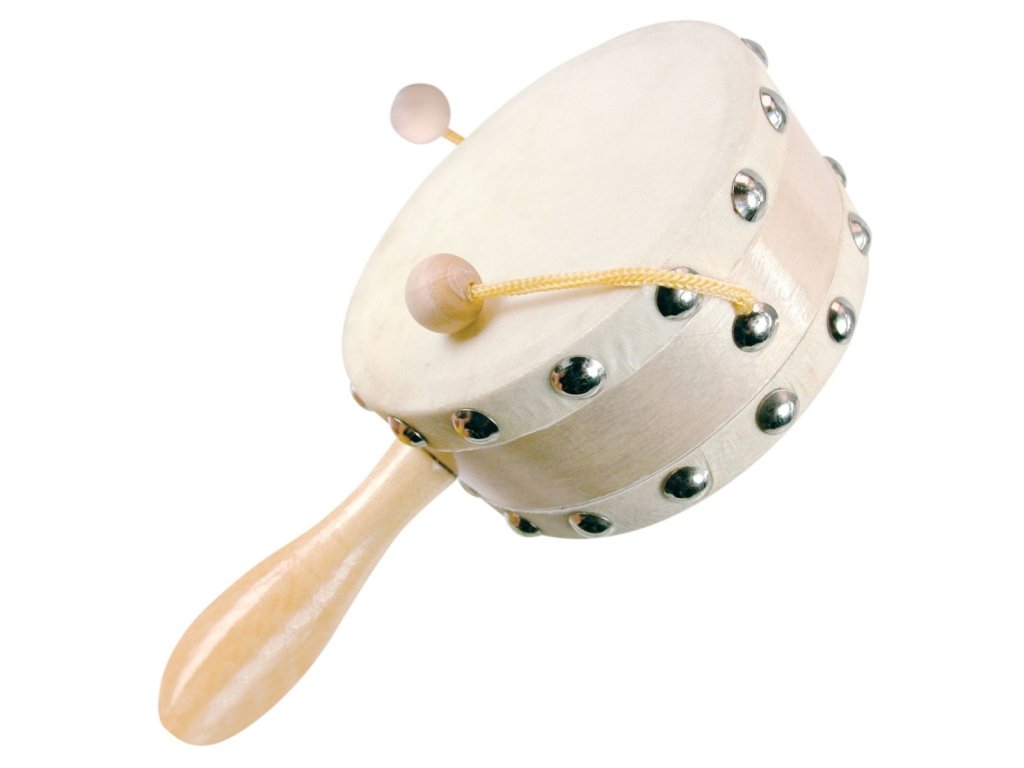 Dřevěný bubínek s rukojetí. Dřevěný bubínek potažený blánou. Bubínek má šňůrku na jejímž konci jsou uzlíky, které narážejí při otáčení na napnutou blánu. Děti si zahrají a zároveň procvičí motoriku rukou. Rozměry: délka - 18cm. Určeno dětem od 3+.Doplňkové parametry