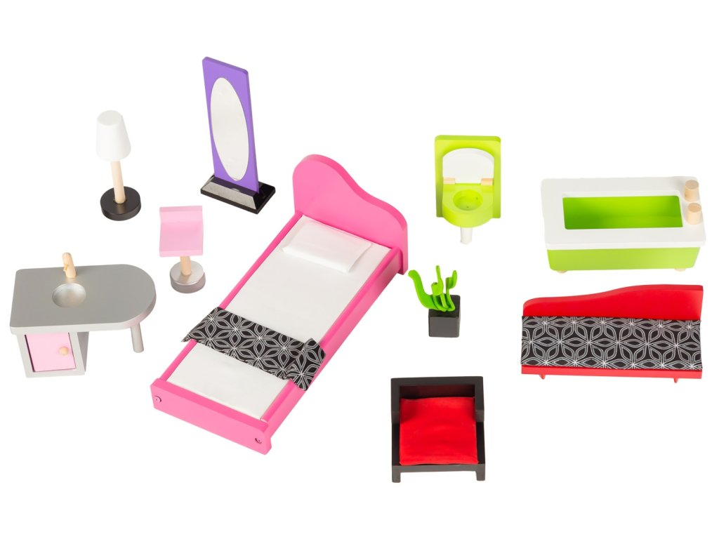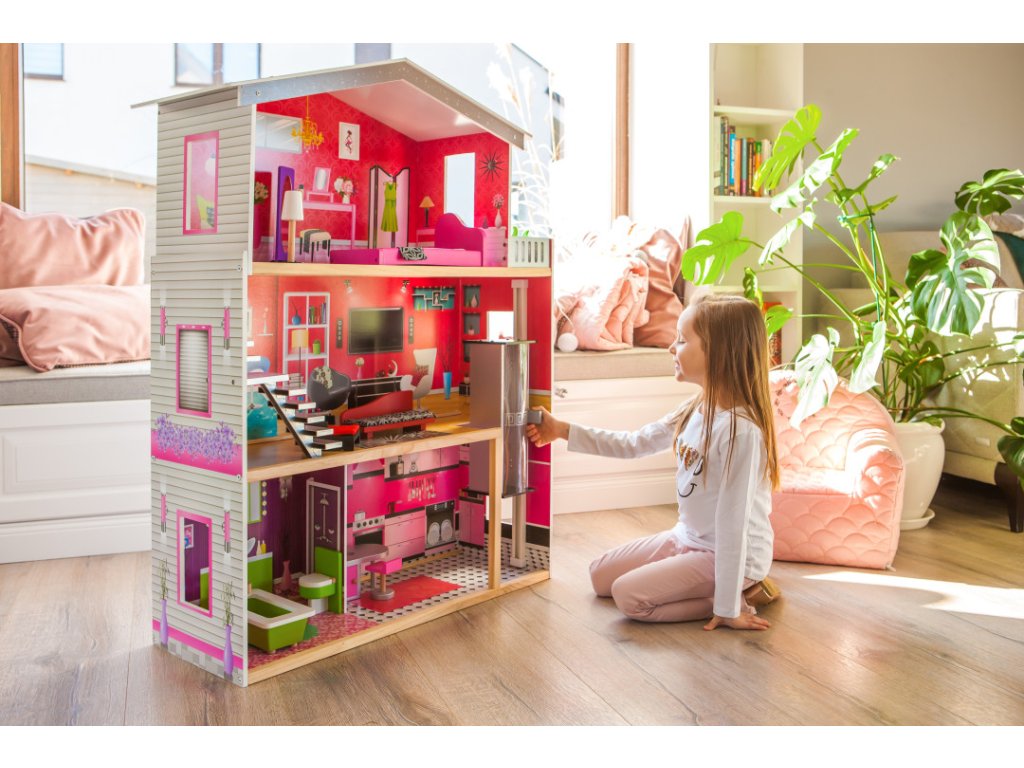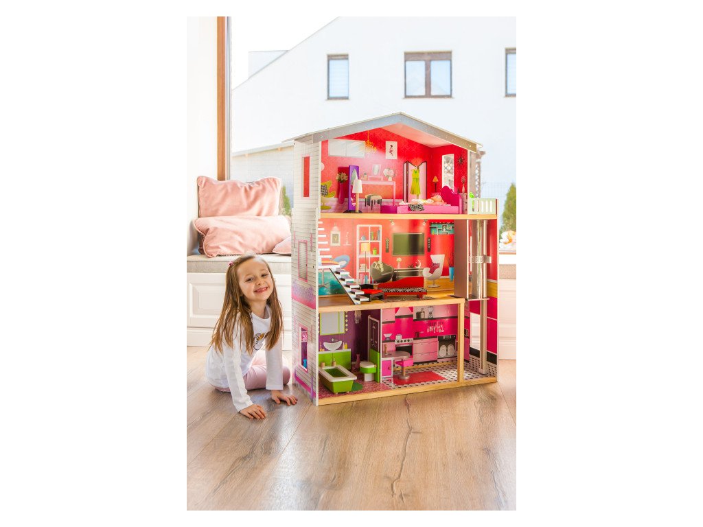 Dřevěný domeček pro panenky Malibu. Pro děti od 3 let. 3 samostatná patra pro hru. 4 výrazné místnosti. Pohyblivý výtah pro panenky. Věrné zobrazení skutečného domu. Tvarovaná střecha pro snadný přístup při hře. Sada 10 dřevěných doplňků a nábytku. Bez ostrých hran pro bezpečnou hru. Hračka podporuje kreativitu a představivost. Produkt značky ECOTOYS. Rezidence Malibu od ECOTOYS. Výjimečný dřevěný domeček pro panenky je skvělým nápadem na dlouhé hodiny zábavy pro každou malou milovnici her. Je vhodný pro větší panenky, které se v tomto domě budou cítit jako v paláci. Produkt je vyroben s důrazem na přesnost zpracování i bezpečnost dítěte, což dokládají příslušné certifikace. Montáž je snadná a rychlá. Domeček je balen v bezpečném, dárkovém obalu. Přehledný návod s obrázky a číslovanými díly umožní rychlé sestavení přibližně do 60 minut. Skvělá zábava. Domeček má 3 samostatná patra a celkem 4 místnosti, které věrně napodobují skutečný rodinný dům. Pohyblivý výtah pro panenky zpestří každou hru. Každá místnost má jiný styl s nábytkem laděným k účelu daného pokoje. Součástí je sada 10 kusů nábytku, které lze libovolně vyjímat a přestavovat. Každý kousek je ručně dokončen s důrazem na detaily, kvalitu a bezpečné oblé hrany. Stabilní třípatrová konstrukce. Přibližné rozměry domečku: 87 × 32 × 114 cm (š × h × v). Domeček je určen pro větší panenky o výšce přibližně 27 cm. První a druhé patro spojují schody. Výška patra je přibližně 35 cm. Pro snadný přístup do podkroví je střecha speciálně tvarovaná. Dítě tak pohodlně využije všechna patra. Výška podkrovního patra je přibližně 42 cm. Čtyři samostatné místnosti v různém stylu. Koupelna. Kuchyně. Prostorný obývací pokoj spojený s jídelnou. Ložnice. Terasa. Výtah pro ještě větší zábavu. Rezidence Malibu není jen moderní vzhled a stylový nábytek. Domeček je vybaven skutečným pohyblivým výtahem pro panenky, který propojuje přízemí s prvním patrem. Převážení panenek mezi patry děti jen tak neomrzí. Sada 10 dřevěných doplňků. Kuchyňská linka s barovou židlí. Vana a toaleta. Pohovka a křeslo. Postel se stojací lampou. Zrcadlo a květina na terasu. Montáž a tipy k používání. Domeček sestavíte přehledně podle návodu s obrázky a číslovanými díly. Doporučujeme stavět na rovném povrchu a jednotlivé díly dotahovat postupně pro maximální stabilitu. Bezpečnost a shoda s normami. Hračka je určena pro děti od 3 let. Panenka není součástí. Používejte pod dohledem dospělé osoby. Před první i každou další hrou zkontrolujte stav výrobku a pevnost všech spojů. Poškozené části ihned přestaňte používat. Obaly a malé díly držte mimo dosah dětí. Výrobek splňuje požadavky platných evropských norem pro bezpečnost hraček, včetně EN 71.Doplňkové parametry