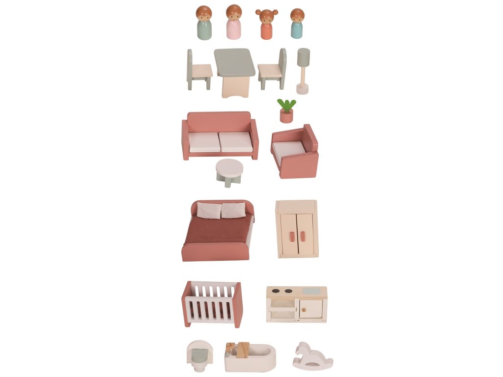 Domeček pro panenky – třípatrový rodinný dům s terasou a „bazénem“ Vítejte doma! V domečku, kde příběhy ožívají každý den. Tento prostorný domeček pro panenky nabízí dětem vlastní malý svět plný fantazie. Má tři patra a bohatě vybavené pokoje, díky čemuž je ideální pro celou panenkovou rodinku. Děti tu najdou vše, co k moderní domácnosti patří – kuchyň, koupelnu, ložnici, obývací pokoj i dětský pokoj v podkroví. S rozměry 54 × 34,5 × 66 cm se pohodlně vejde do dětského pokoje a zároveň poskytuje dostatek prostoru pro hraní více dětí najednou. Promyšlené detaily pro ještě více zábavy Odnímatelná přední část střechy ukrývá další překvapení. Stačí ji sundat, otočit a položit před otevřený domeček – rázem se promění v zahradu s bazénem a nábytkem. Děti tak mohou panenkám připravit odpočinek na zahradě, letní párty nebo rodinnou oslavu. Domeček je navržen tak, aby byl snadno přístupný ze všech stran, takže si s ním pohodlně zahrají i dvě a více dětí současně. Podporuje fantazii a rozvoj dovedností Při hraní si děti vytvářejí vlastní rodinné příběhy, učí se komunikačním a sociálním dovednostem a přirozeně napodobují svět dospělých. Manipulace s nábytkem a panenkami zároveň rozvíjí jemnou motoriku a koordinaci ruky a oka. Domeček pro panenky je oblíbená, tradiční a nadčasová hračka, která děti zabaví na dlouhé hodiny – a rodiče i prarodiče se rádi přidají. Díky přiloženému příslušenství a panenkám je připravený k hraní hned po vybalení. Rozměry domečku: 54 × 34,5 × 66 cm. Věk: vhodné pro děti od 3 let. Upozornění: Obal není hračka. Před předáním dítěti odstraňte veškerý obalový materiál. Výrobek není určen ke hraní dětmi bez dozoru. Obsahuje malé části – nebezpečí spolknutí.Doplňkové parametry