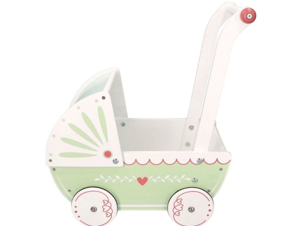 Dřevěný kočárek pro panenky Adam Toys - mátovo/bílý
