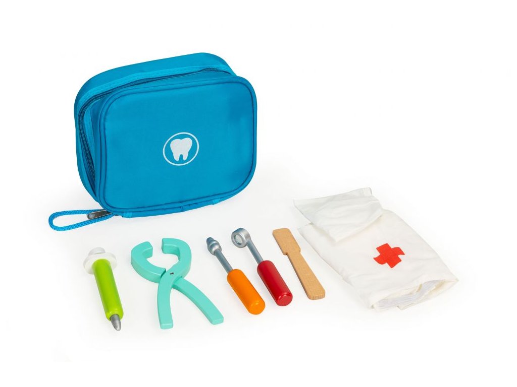 Eco Toys 7-dílná dřevěná zubařská sada s taškou