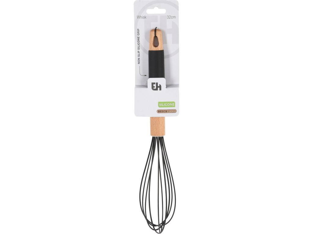 Kuchyňská metlička vyrobená z nerezové oceli s nepřilnavým silikonovým povlakem. Vybavena dřevěnou rukojetí s ergonomickou silikonovou rukojetí. Šikovná, praktická a estetická, ideální na šlehání. Délka 32 cm