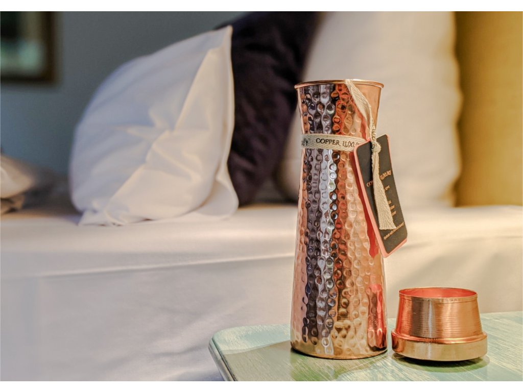 Vyrobena je z mědi, ušlechtilého kovu, který podle ajurvédy disponuje léčivým vlivem na lidský organismus. Měď je známá svými antibakteriálními schopnostmi, je velmi odolná a lehčí než sklo nebo nerez.
