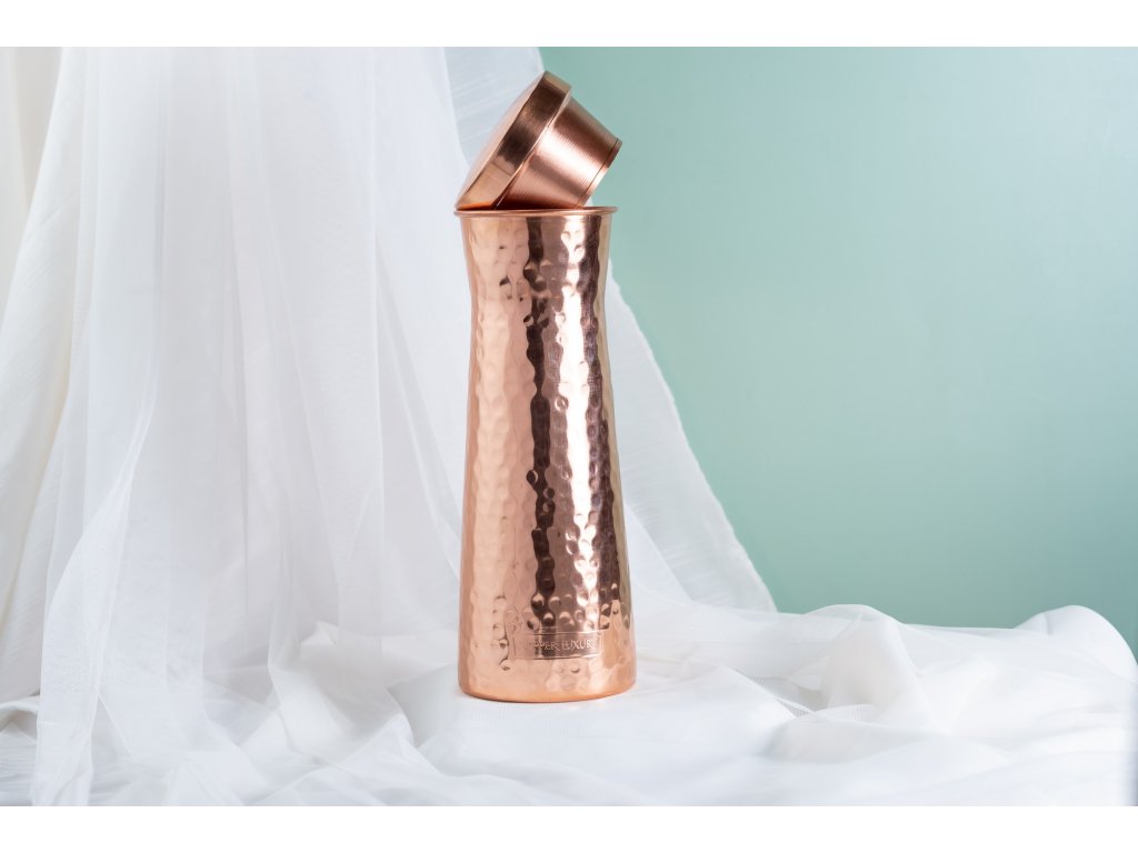 Používejte pouze na neperlivou vodu. Produkt byl pro zdravotní nezávadnost testován německou společností TÜV Rheinland. Aby vám sloužil dlouhá léta, doporučujeme pročíst náš článek Benefity měděného nádobí a jak o něj pečovat.