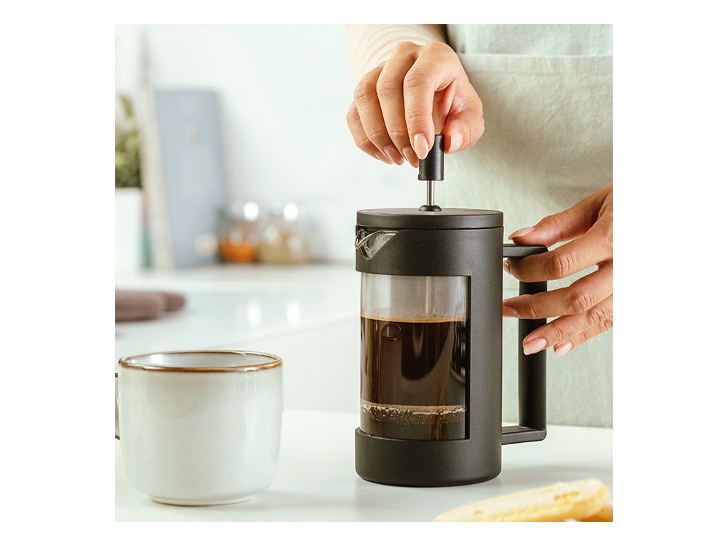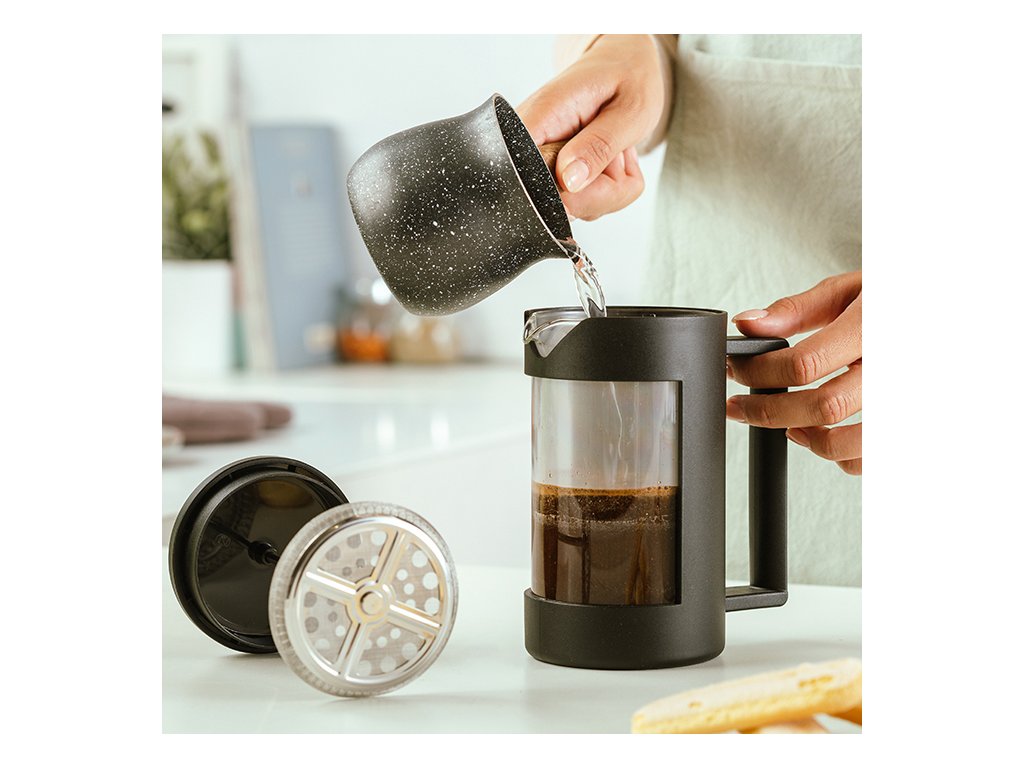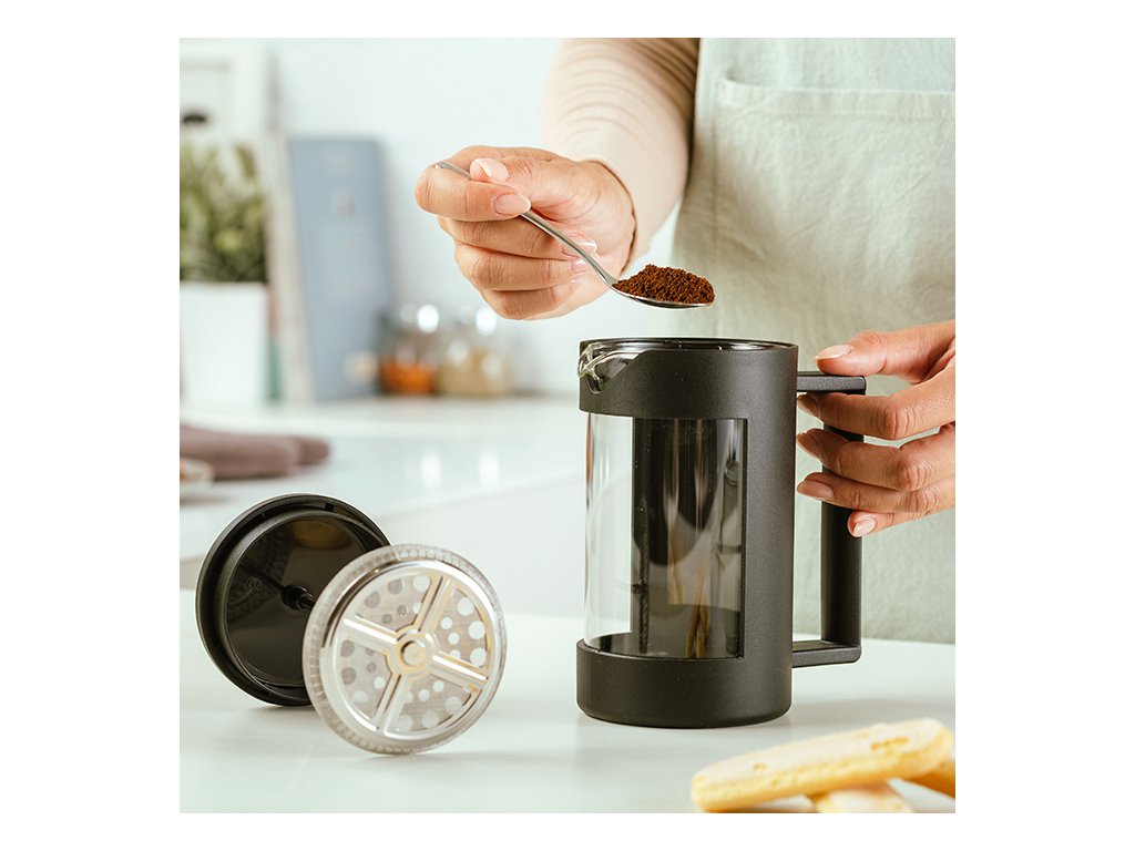 Kávovar je ideální pro přípravu vašeho oblíbeného nápoje. French press je vyroben ze skla odolného vůči vysokým teplotám, s ergonomickou rukojetí. Obsahuje píst a filtr z nerezové oceli 18/8.