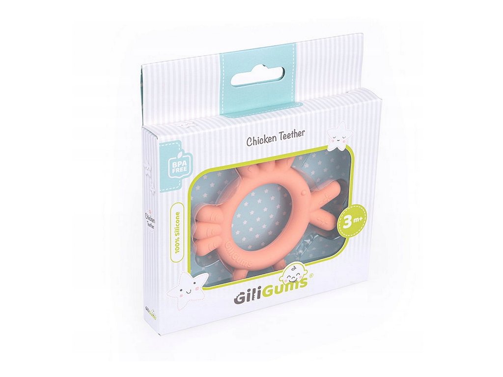 GiliGums Dětské silikonové kousátko Chicken Teether, 3m+, meruňková, 1 ks