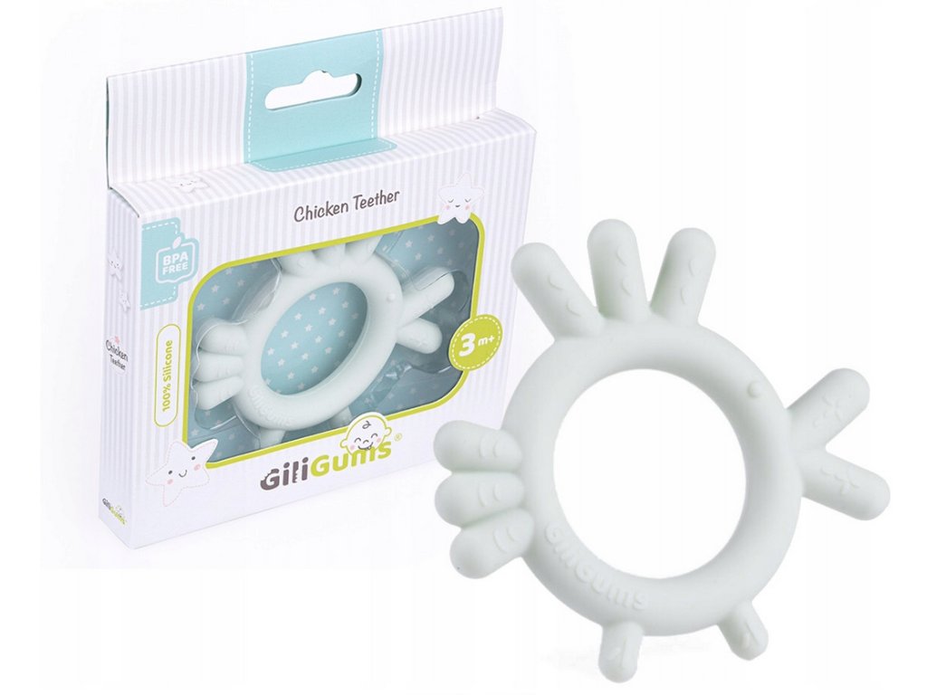 GiliGums Dětské silikonové kousátko Chicken Teether, 3m+, sv. mátová, 1 ks