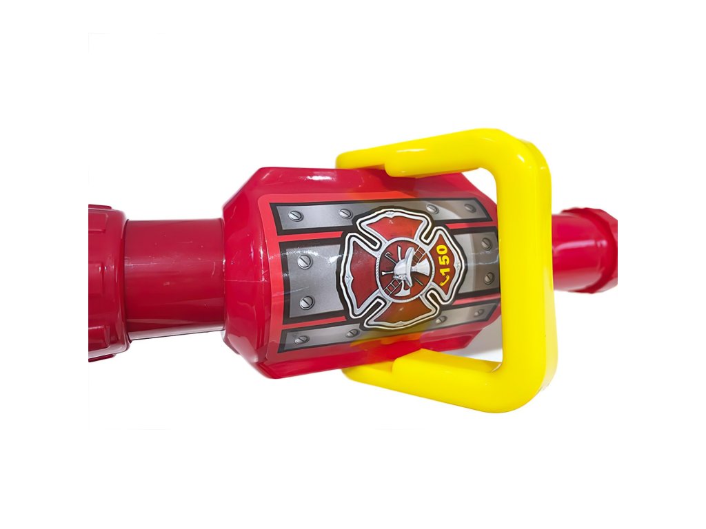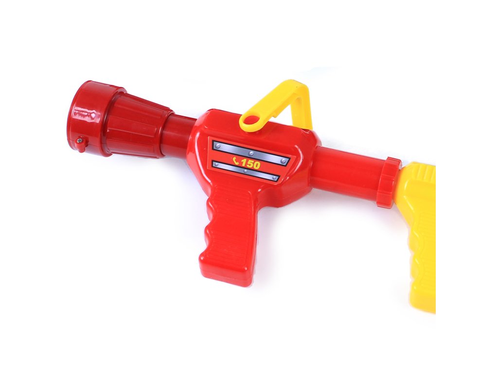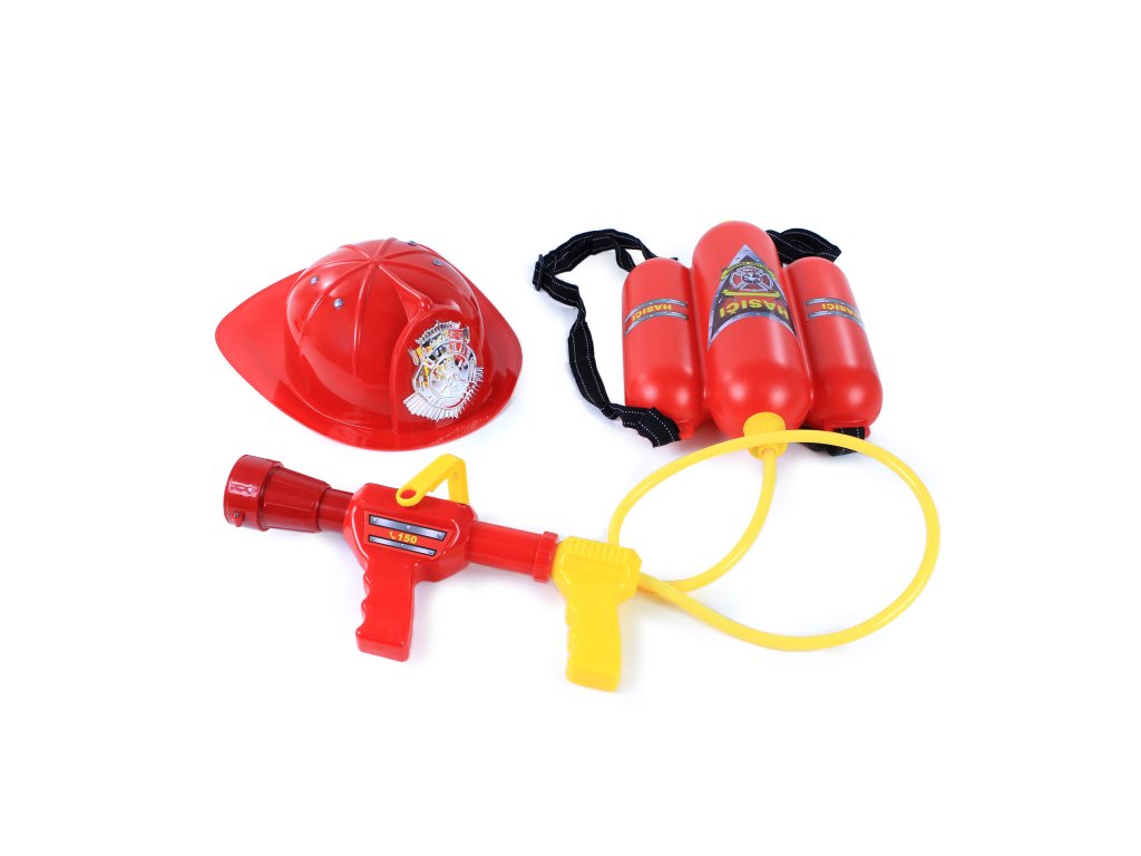 Sada obsahuje vše potřebné pro autentický zážitek z hasičské akce: přilbu, která chrání hlavu při zásazích, zásobník na vodu, který se snadno umístí díky popruhům na záda a jednoduše naplní vodou, a hadici se stříkačkou, která se lehce našroubuje k zásobníku a hra na hasiče v plné výbavě může začít. Vše je v typických červeno-žlutých sytých barvách. Všechny součásti jsou vyrobeny z bezpečných plastových materiálů, což zajišťuje, že je sada vhodná pro děti a zároveň bezpečná při hraní.