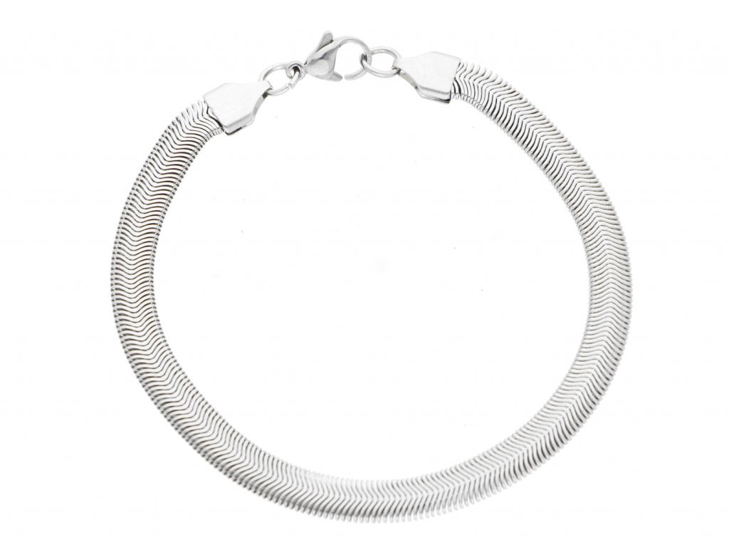 Hladký plochý řetízek a náramek z chirurgické oceli. Délka 50 cm, šířka 0,6 cm. Náramek délka 19 cm ,šířka 0,6 cm.