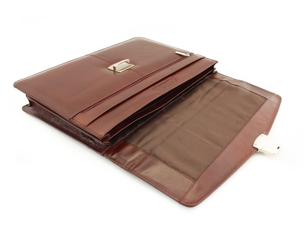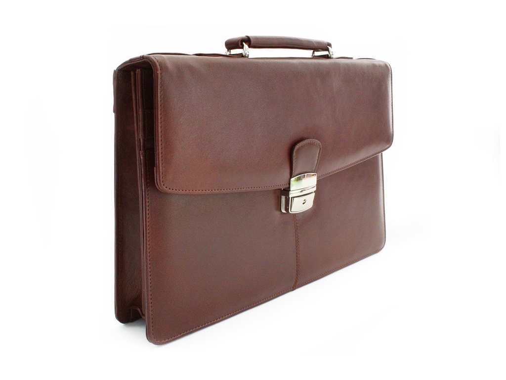 Hnědá kožená aktovka se třemi vnitřními přihrádkami 112-6004-40
