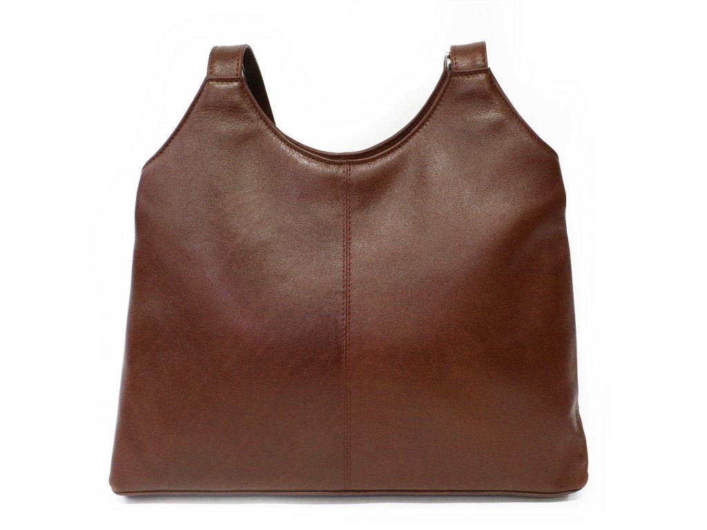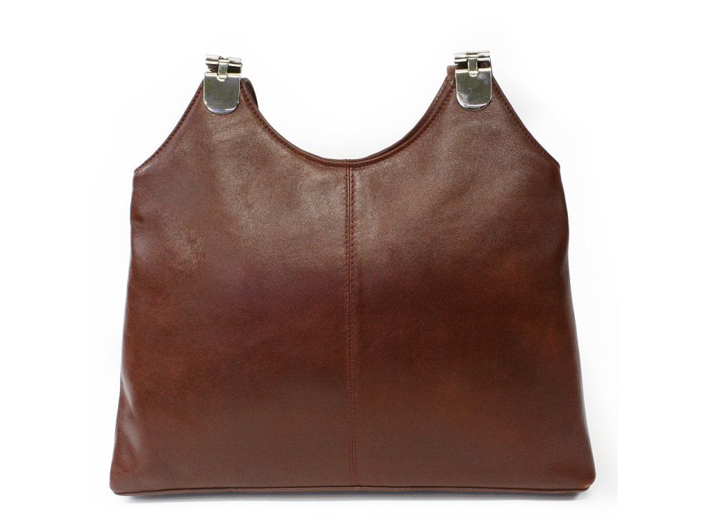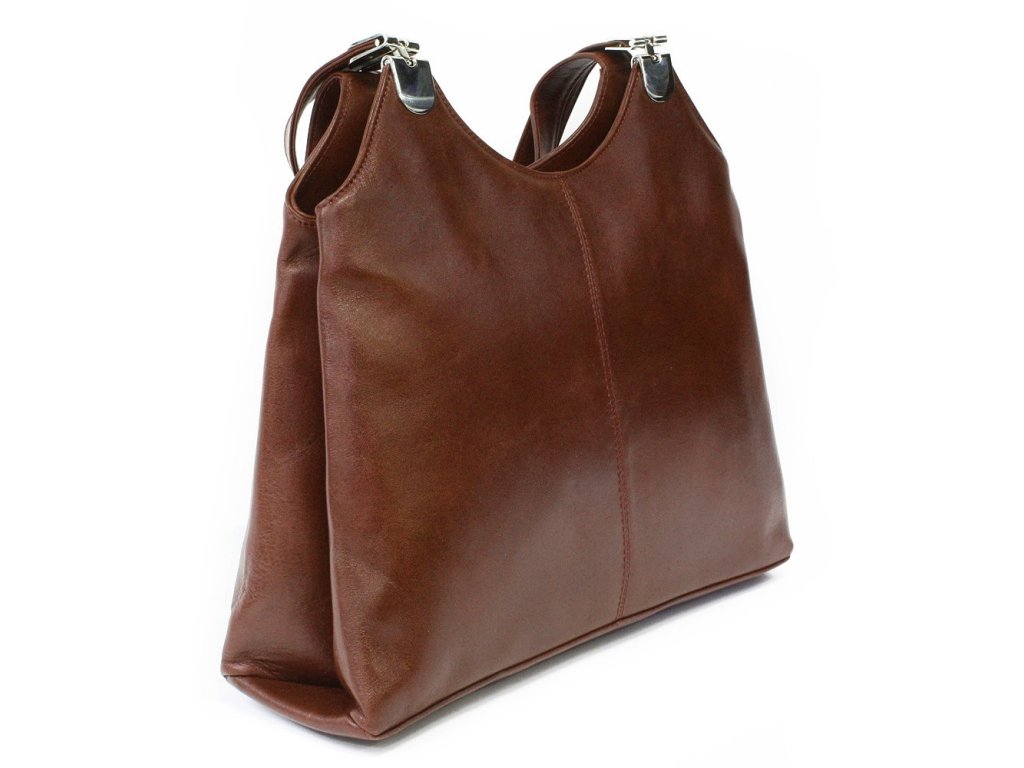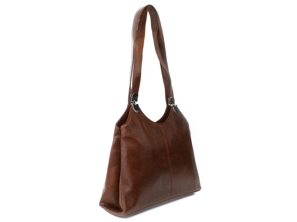 Hnědá kožená zipová kabelka se dvěma popruhy 212-8013-40
