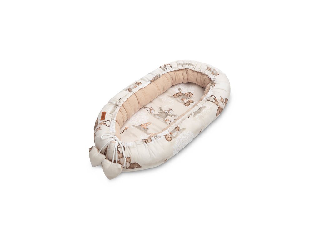 Hnízdečko, kokon pro miminko mušelín, Zábava v lese, béžové
