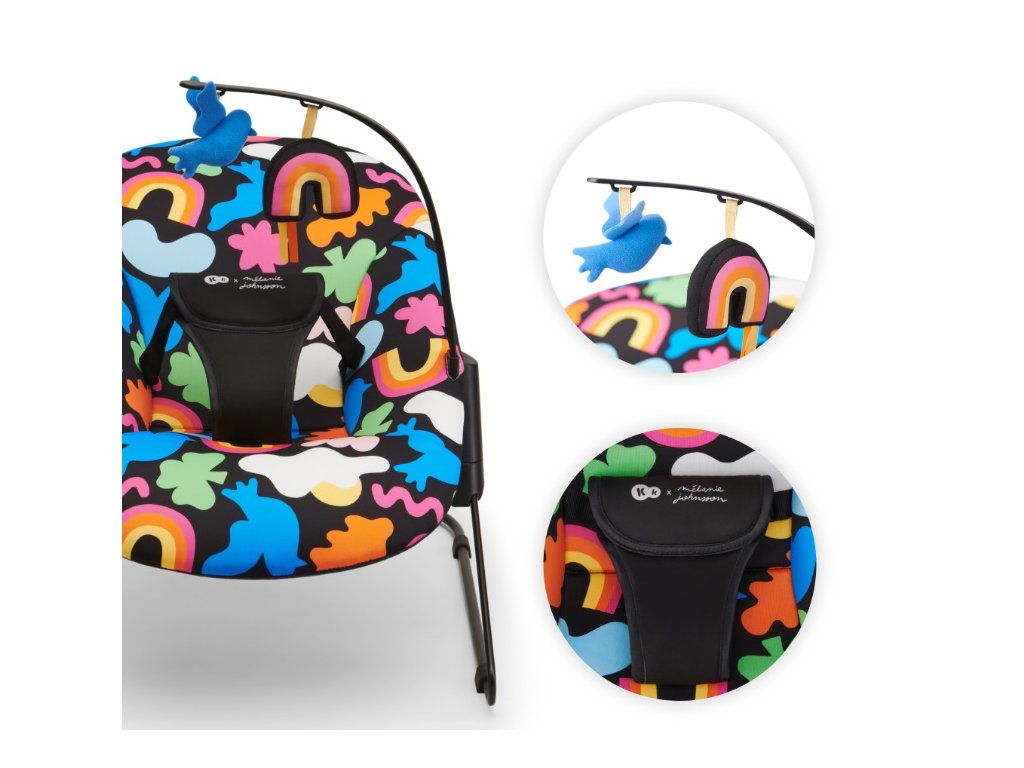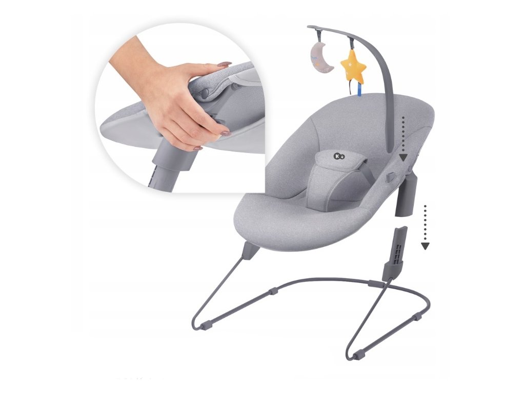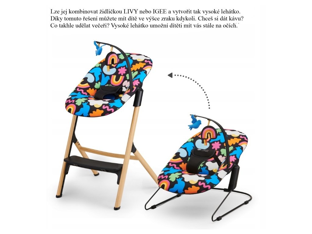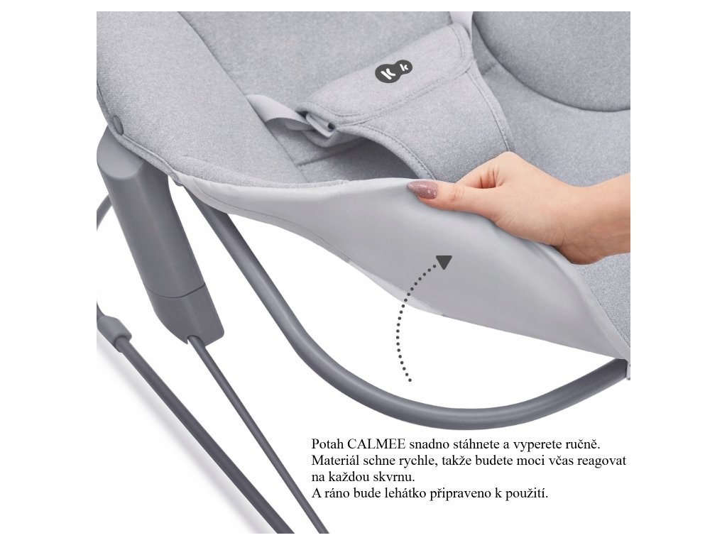 Houpací lehátko CALMEE. CALMEE byl navržen s ohledem na nejmenší děti. Široké sedadlo a tvarované opěradlo poskytují batolatům pohodlí při odpočinku. Příjemný materiál zvyšuje pohodlí pro zážitek dítěte. Rodič lehátko snadno uvede do pohybu a jemné houpání pomůže miminko uklidnit . Charakteristika: Pro děti od narození do 9 kg. Široký sedák a tvarované opěradlo. Hrazdička s 2 hračkami, které povzbuzují dítě k natahování rukou. 3-bodové bezpečnostní pásy. Lehká konstrukce - snadno přenáší z místa na místo. Neposkytuje zbytečné vnější podněty. Snadné čištění - potah lze sejmout a vyprat. Lze kombinovat židličkou IGEE nebo LIVY. Materiály: Rám: ocel. Potah: polyester. Hračky: polyester. Rozměry: 64 x 48 x 57 cm. Hmotnost: 2,3 kg.Doplňkové parametry