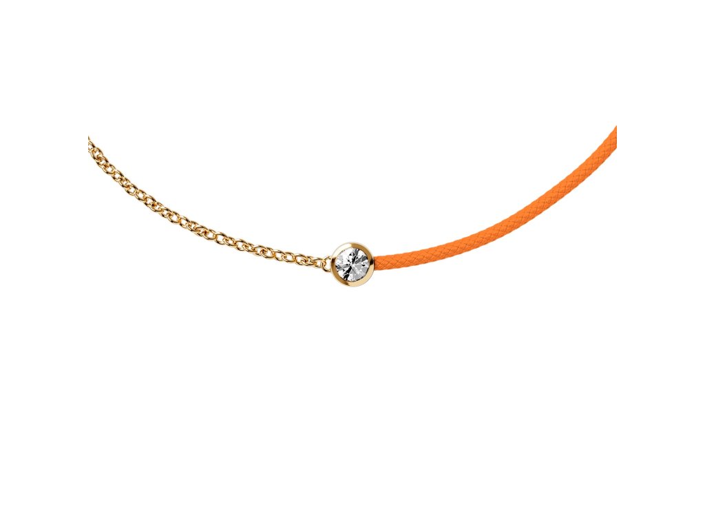 V náramku se potkává stříbrný řetízek ve zlaté barvě s jemnou bavlněnou šňůrkou v oranžovém tónu. Barevná kombinace působí živě a optimisticky, díky čemuž se náramek hodí k samostatnému nošení i k lehkému vrstvení s dalšími náramky, řetízky nebo hodinkami.