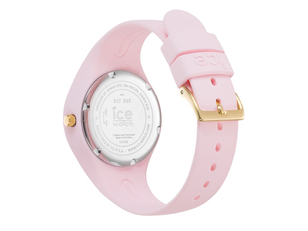 Dětské hodinky Ice Watch s číselníkem v bílé barvě zdobeným duhou a zlatými arabskými číslicemi a zlatými ručkami s vteřinovou ručičkou s růžovým řemínkem.Doplňkové parametry