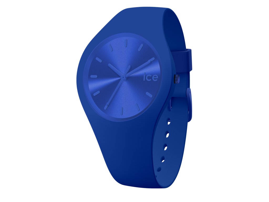 Dámské módní hodinky se silikonovým řemínkem modré barvy a číselníkem s indexy.