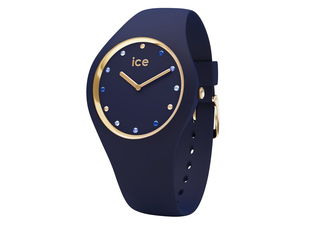 Dámské silikonové hodinky modré barvy a zdobeným číselníkem s indexy.