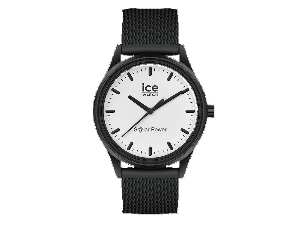 Pánské náramkové hodinky poháněné solární energií s řemínkem černé barvy, bílým číselníkem a indexy.