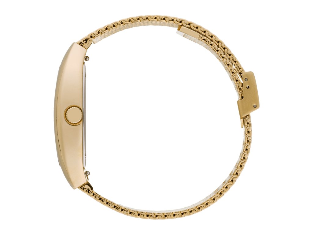 Atraktivní růžový číselník s římskými číslicemi a zlatými detaily působí elegantně a nadčasově. Tento design podtrhuje jemná síťovina ocelového řemínku ve zlatém odstínu, která dodává hodinkám šmrnc a sofistikovanost.